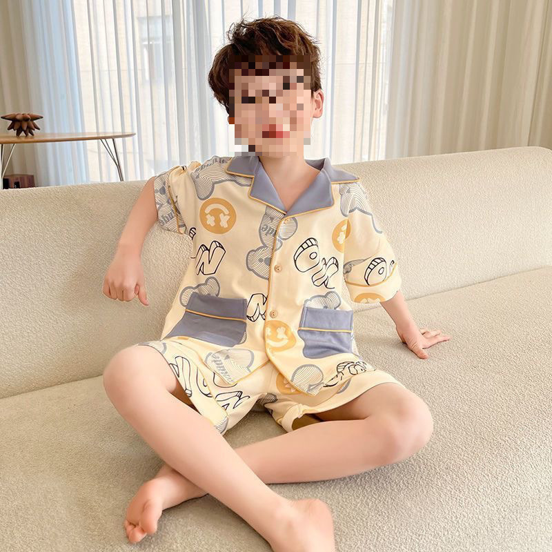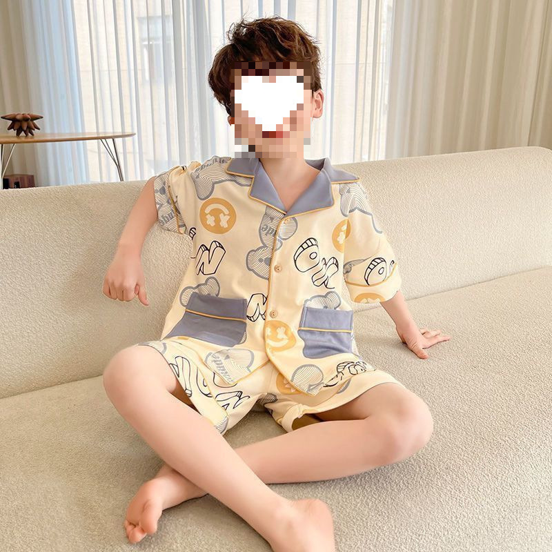 어린이 잠옷 반팔 얇은 여름 중대형 어린이 소년 카디건 새로운 소년 가정 의류 만화 여름 정장