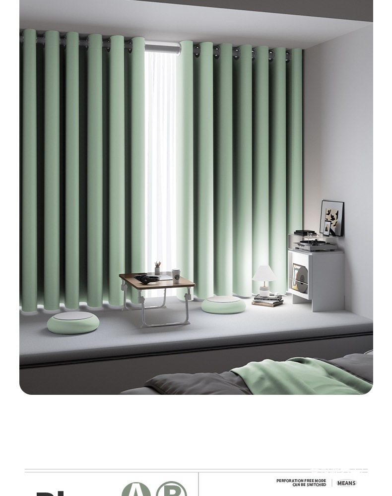 침실용 암막커튼은 펀칭 없이 설치가 가능하며, 신형 2025년형 파티션 차양 및 썬블록 창문 텔레스코픽봉 세트가 함께 제공됩니다.