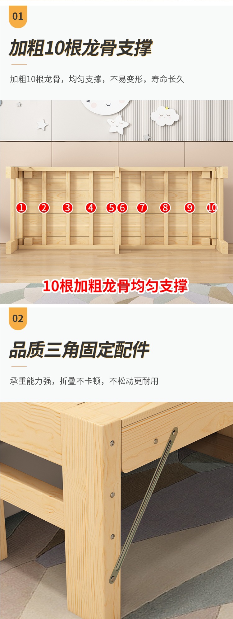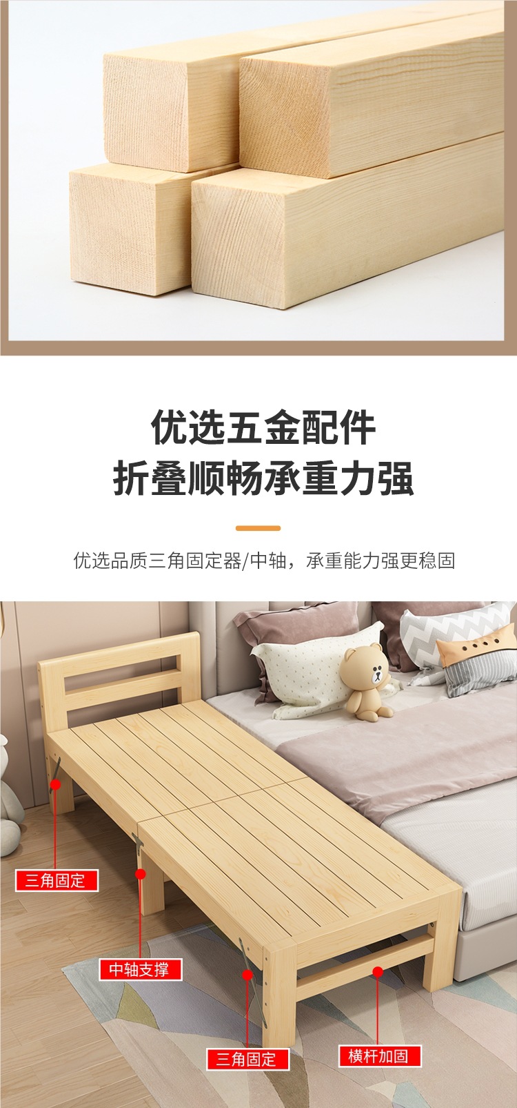 어린이용 접이식 침대, 확대 및 확장된 싱글 침대, 원목 접합 침대 옆, 성인용 점심 시간 침대, 이음매 없음스토어 가기