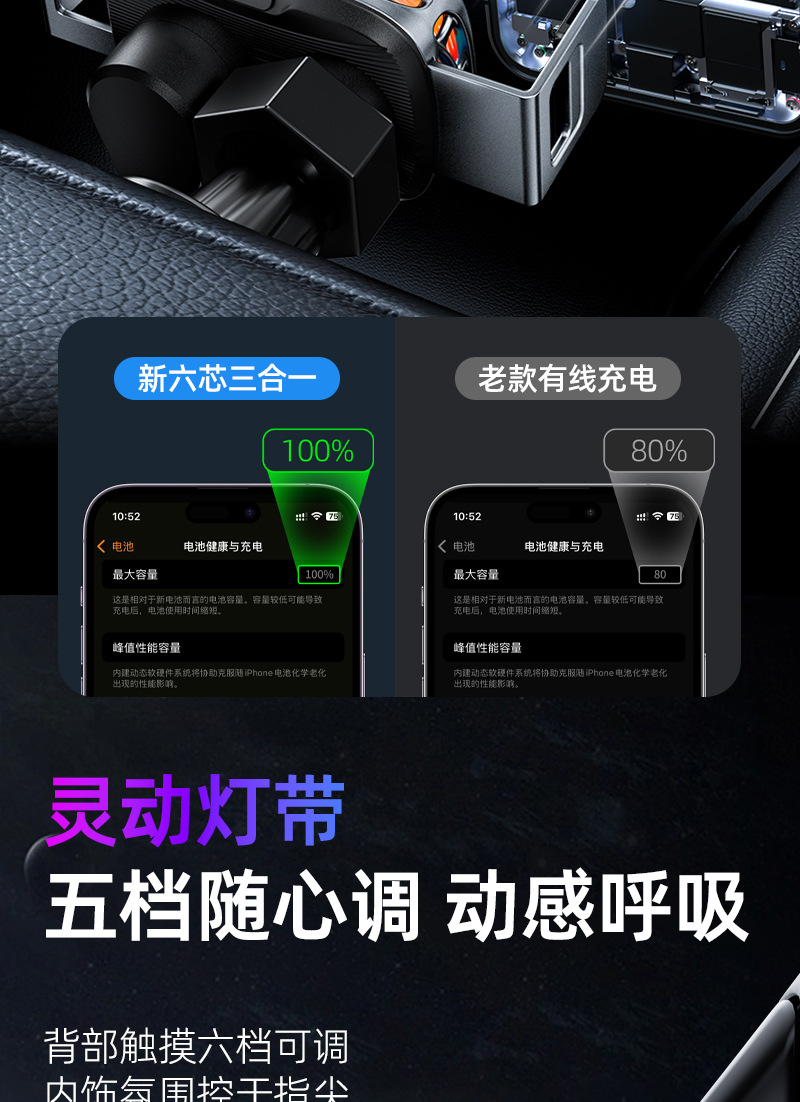 신차 센서 홀더, 스마트 주변 조명, 휴대폰 홀더, 수평 및 수직 이중 용도 금속 전기 자동차 충전기