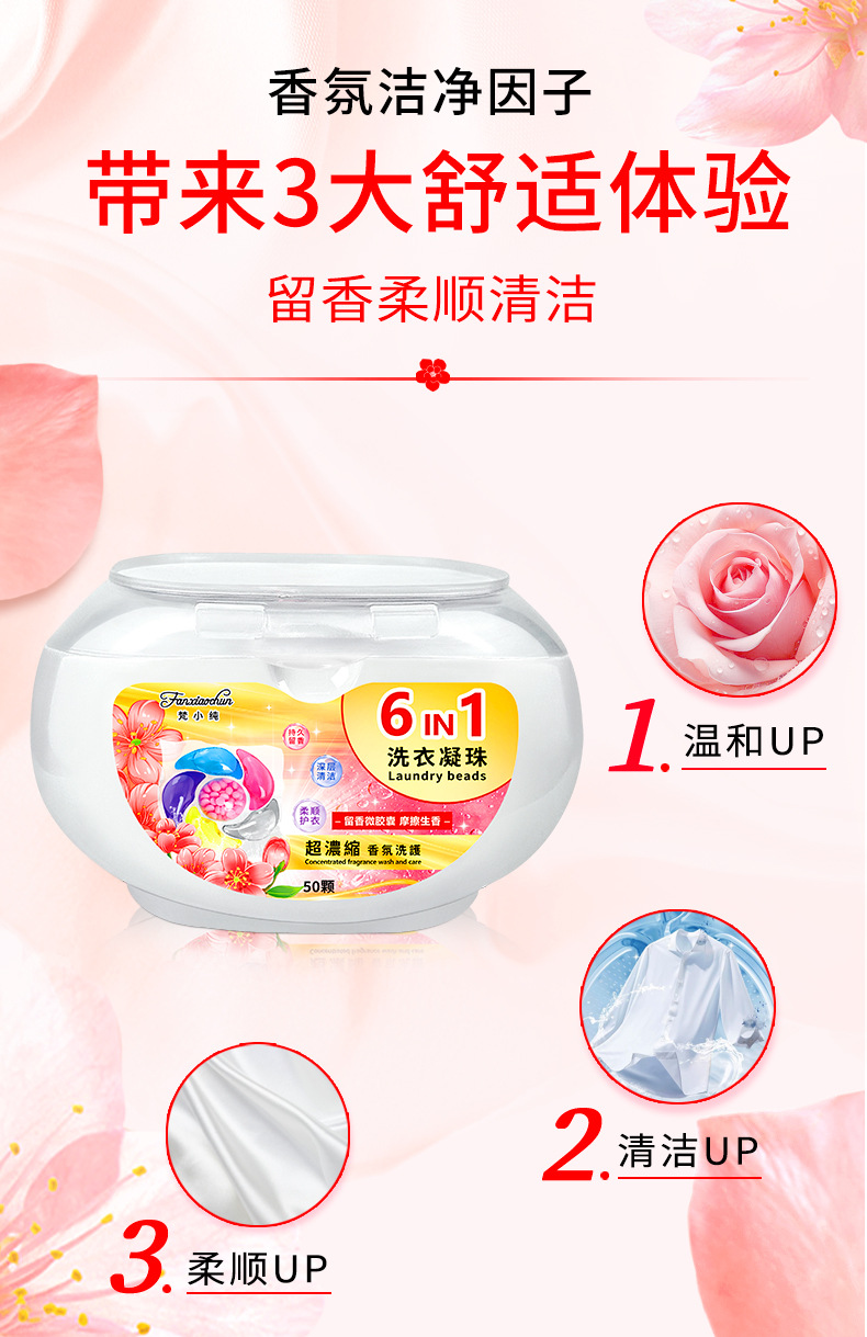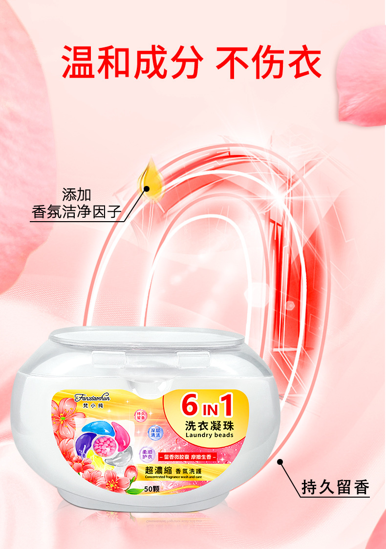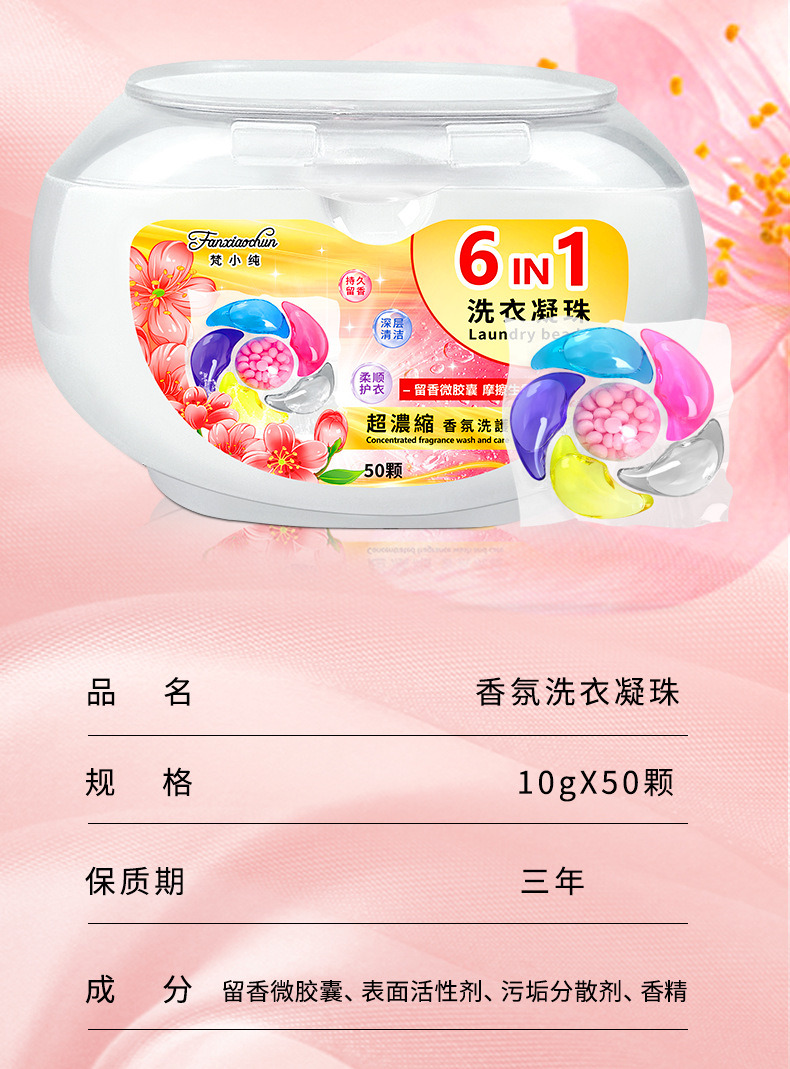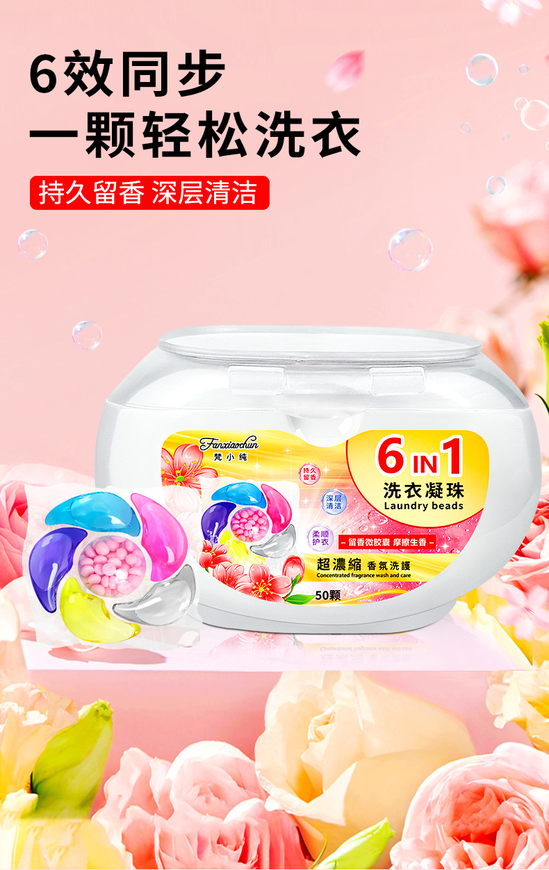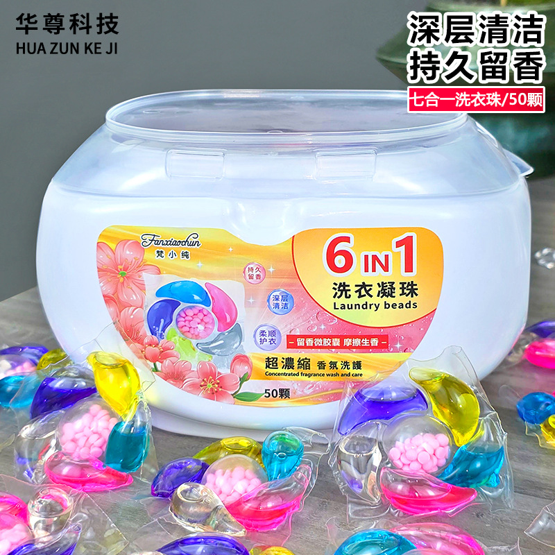 새로운 50개 박스형 6캐비티 10g 세탁 비즈 오염 제거 및 오래 지속되는 향기 6-in-1 세탁 비즈 도매 제조업체스토어 가기