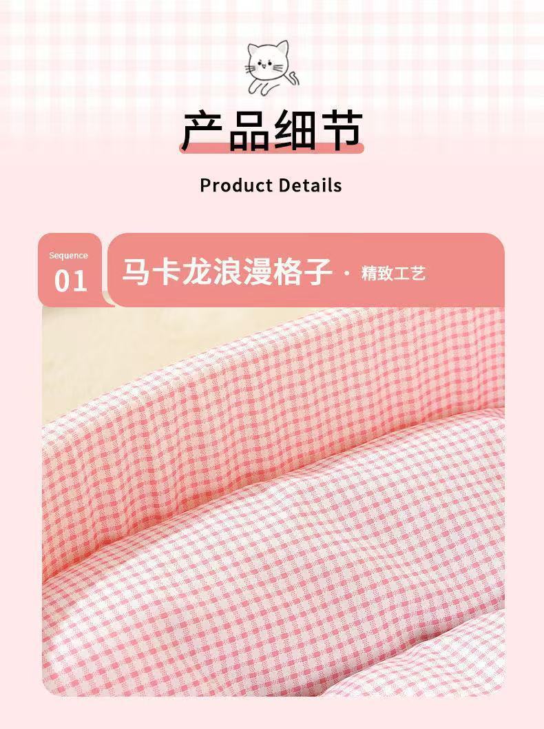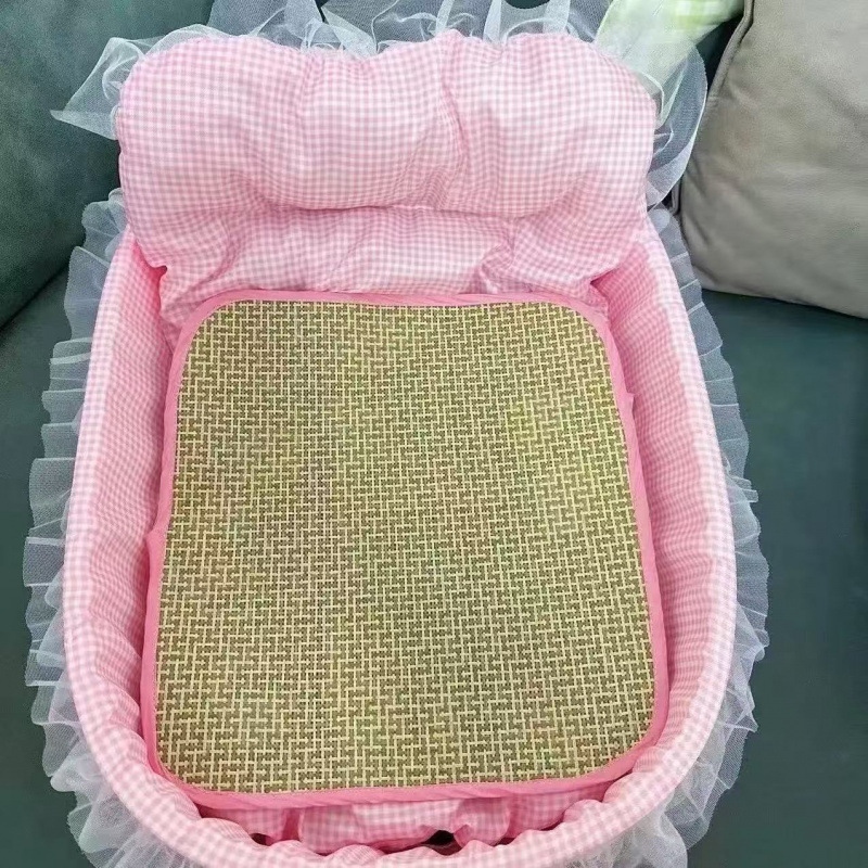 • 핑크 체크무늬 애완동물 둥지 [하의+매트+레이스+매트]