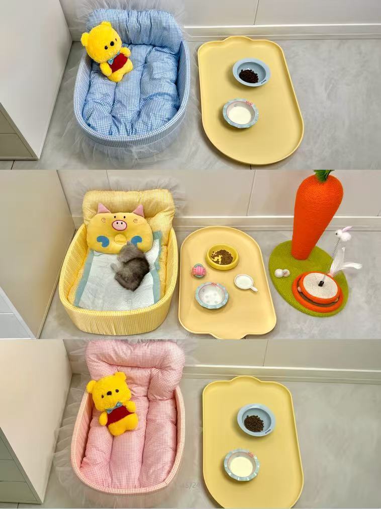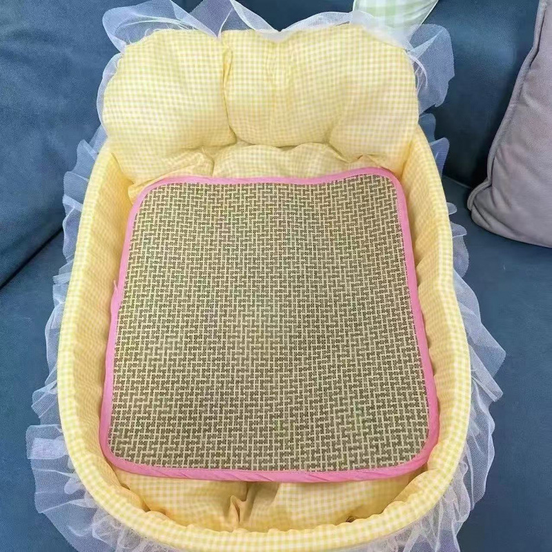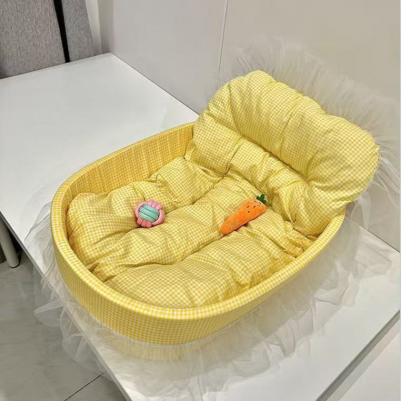 • 노란색 체크무늬 애완동물 둥지 [하의+매트+레이스+매트]