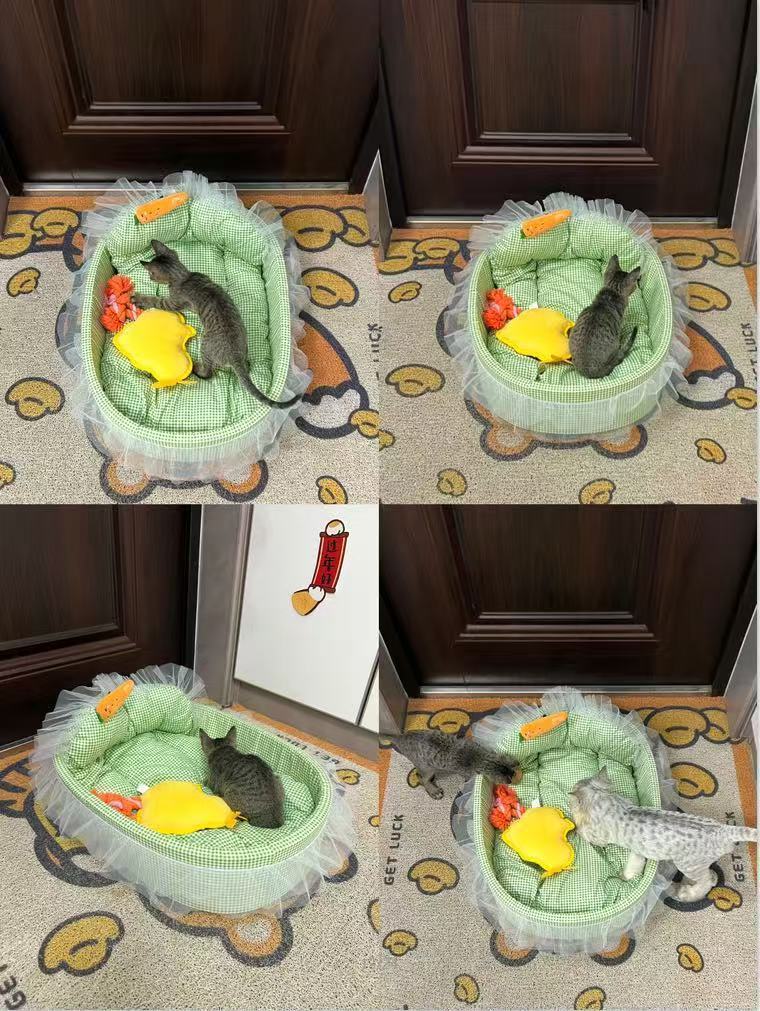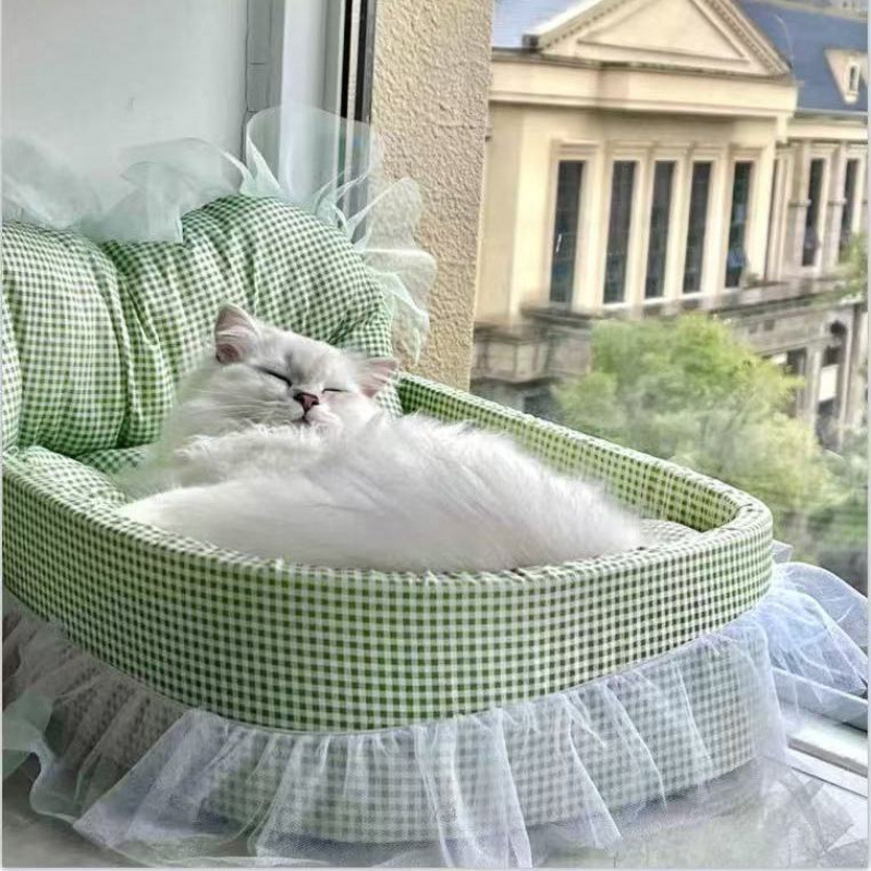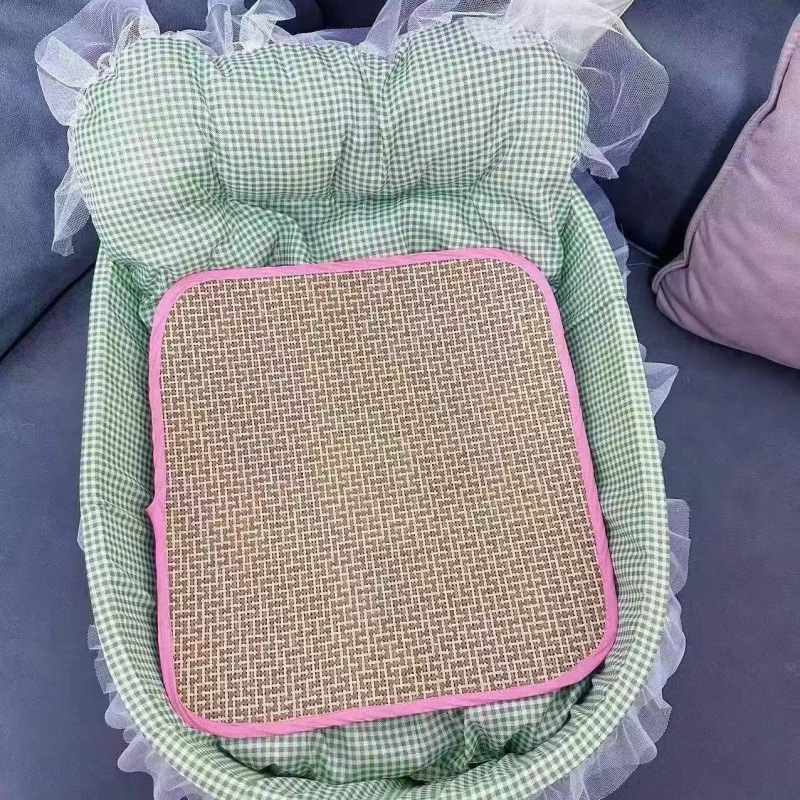 • 녹색 체크무늬 애완동물 둥지 [하의+매트+레이스]