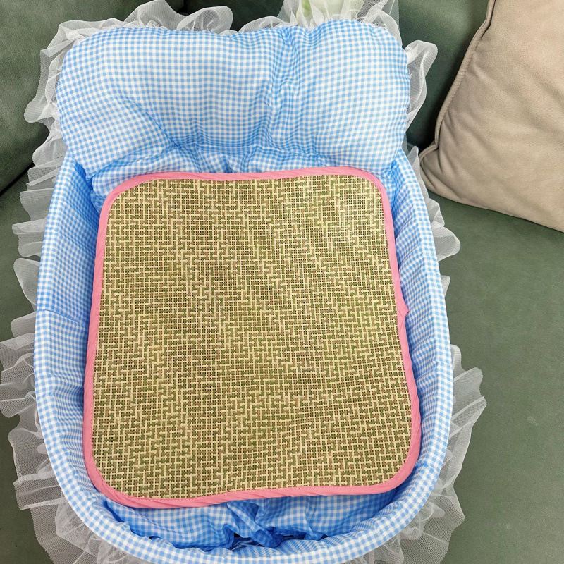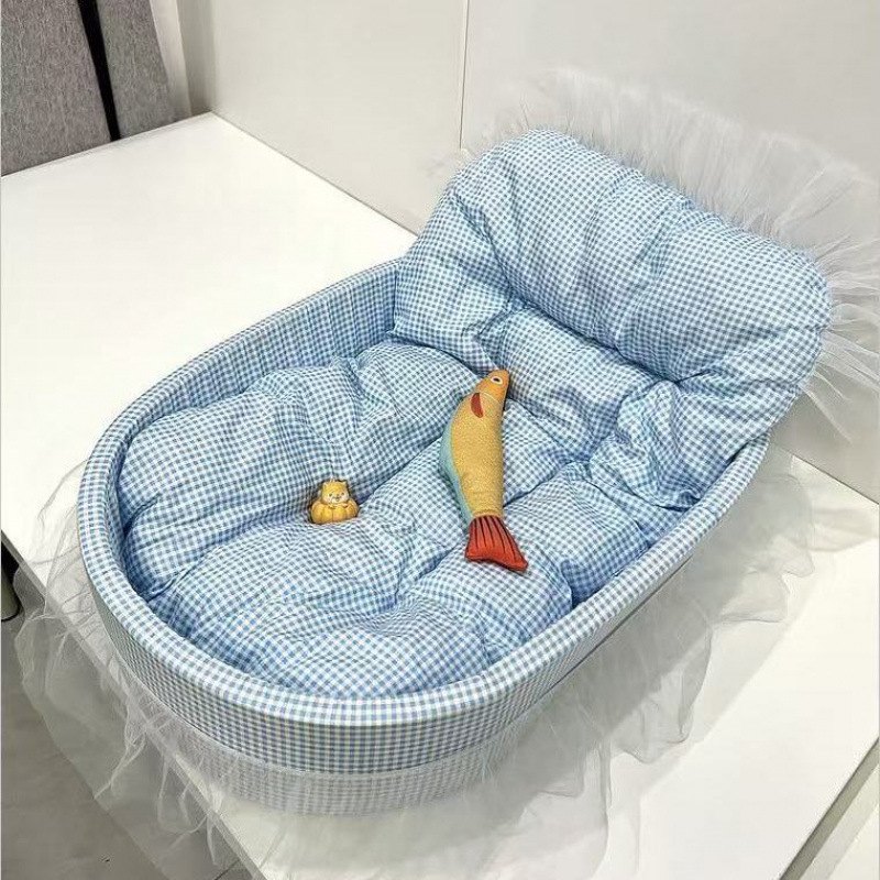 • 블루 체크무늬 애완동물 둥지 [하의+매트+레이스+매트]