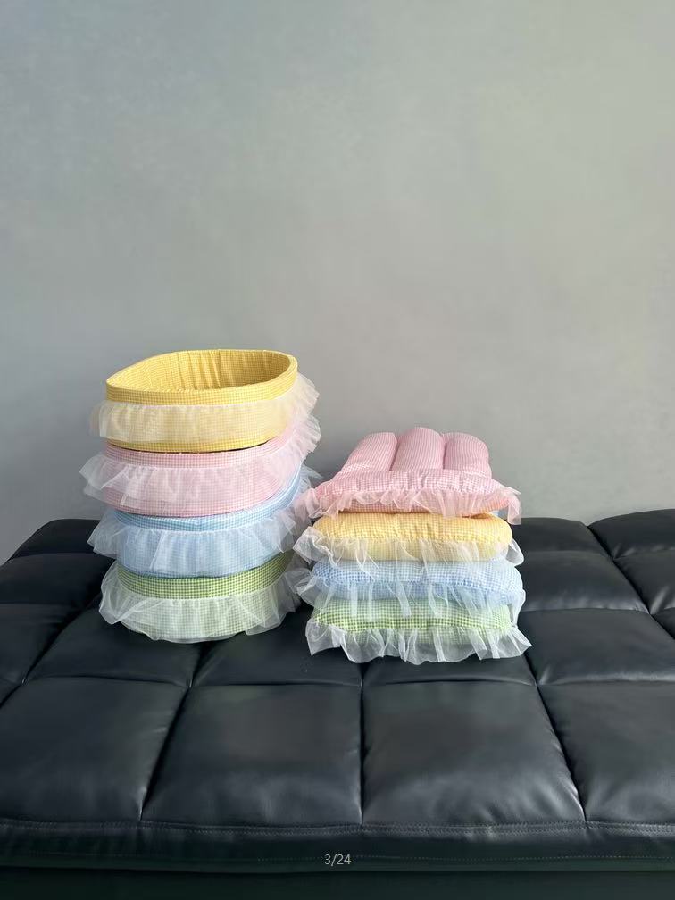 • 노란색 체크무늬 애완동물 둥지 [하의+매트+레이스]