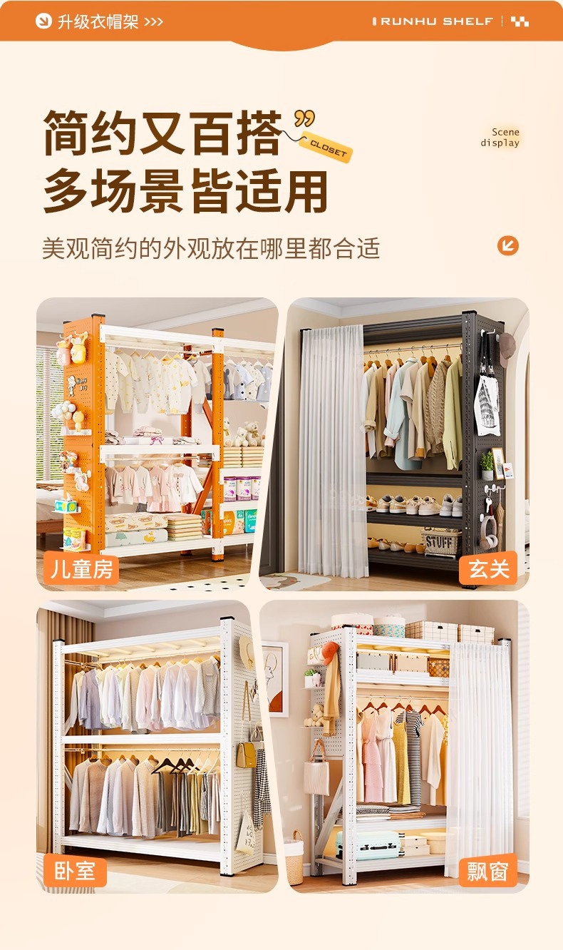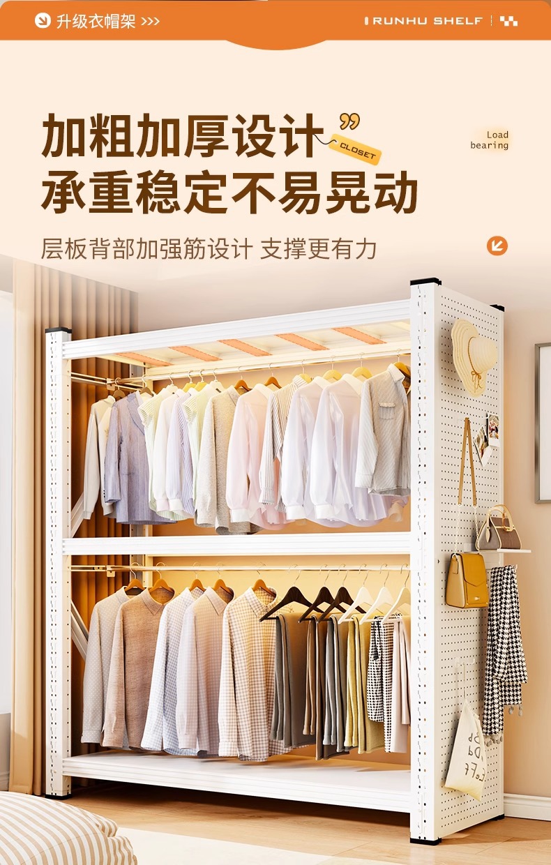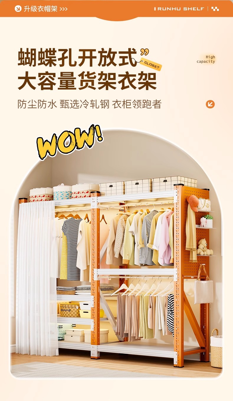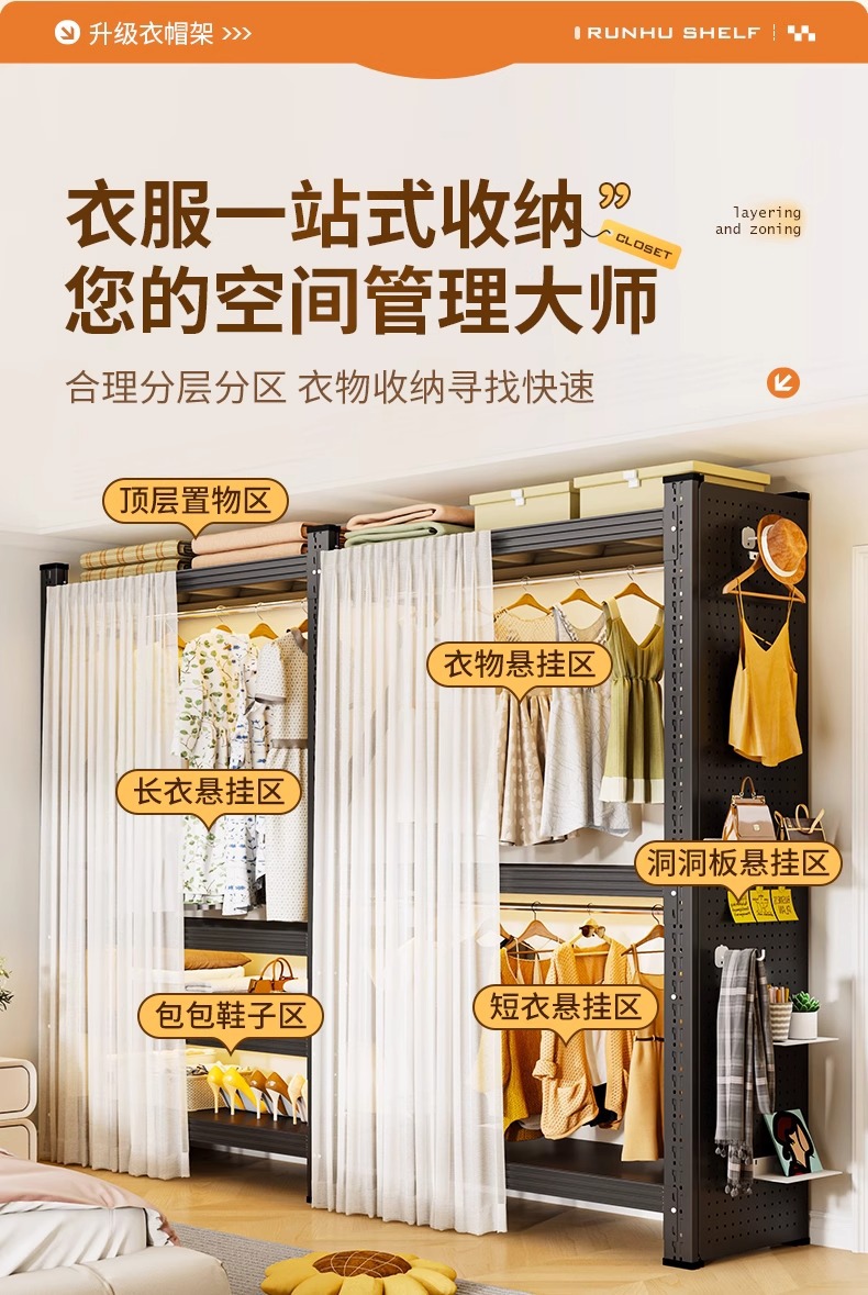 개방형 옷걸이 침실 수납 캐비닛 간단한 조립 바닥 스탠딩 수납 선반 코트 랙 임대실 선반 옷장스토어 가기