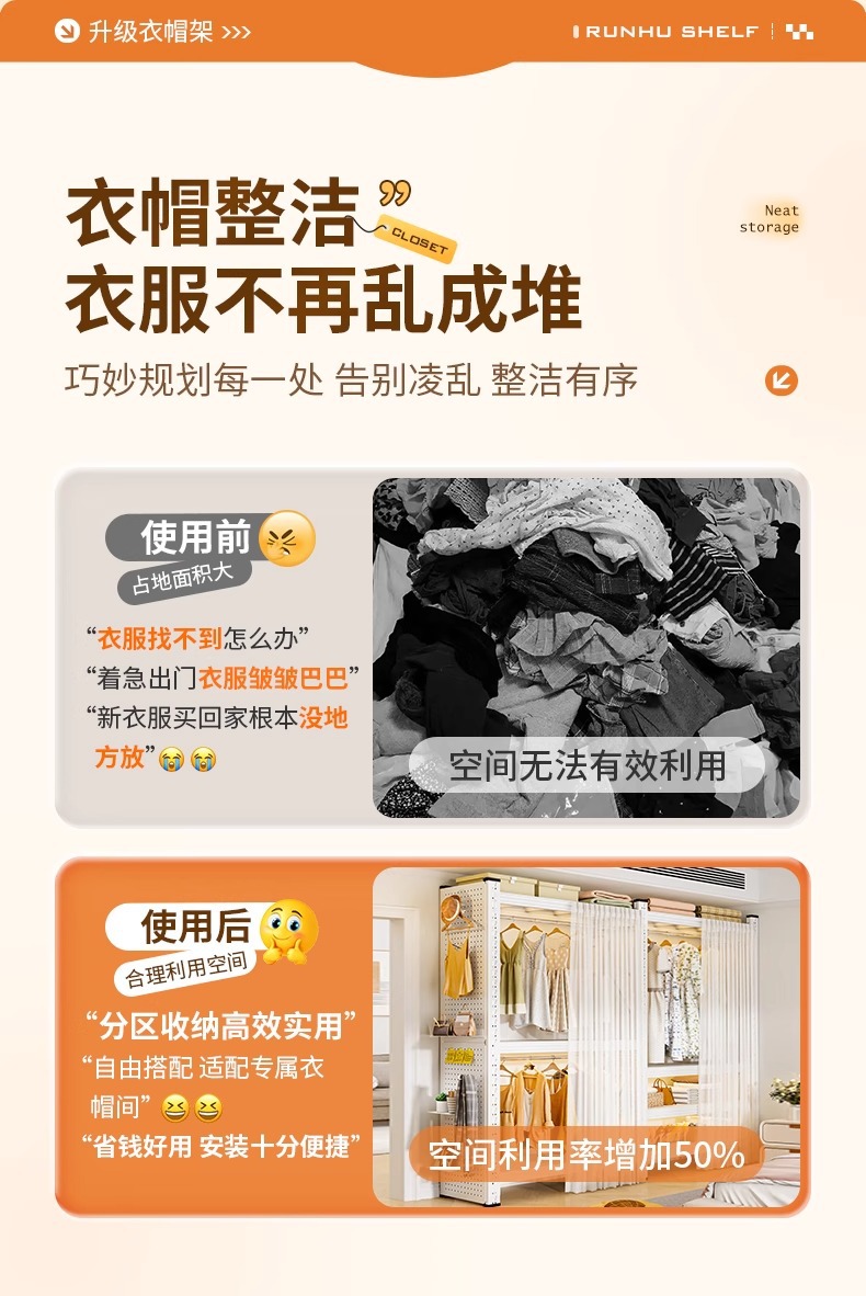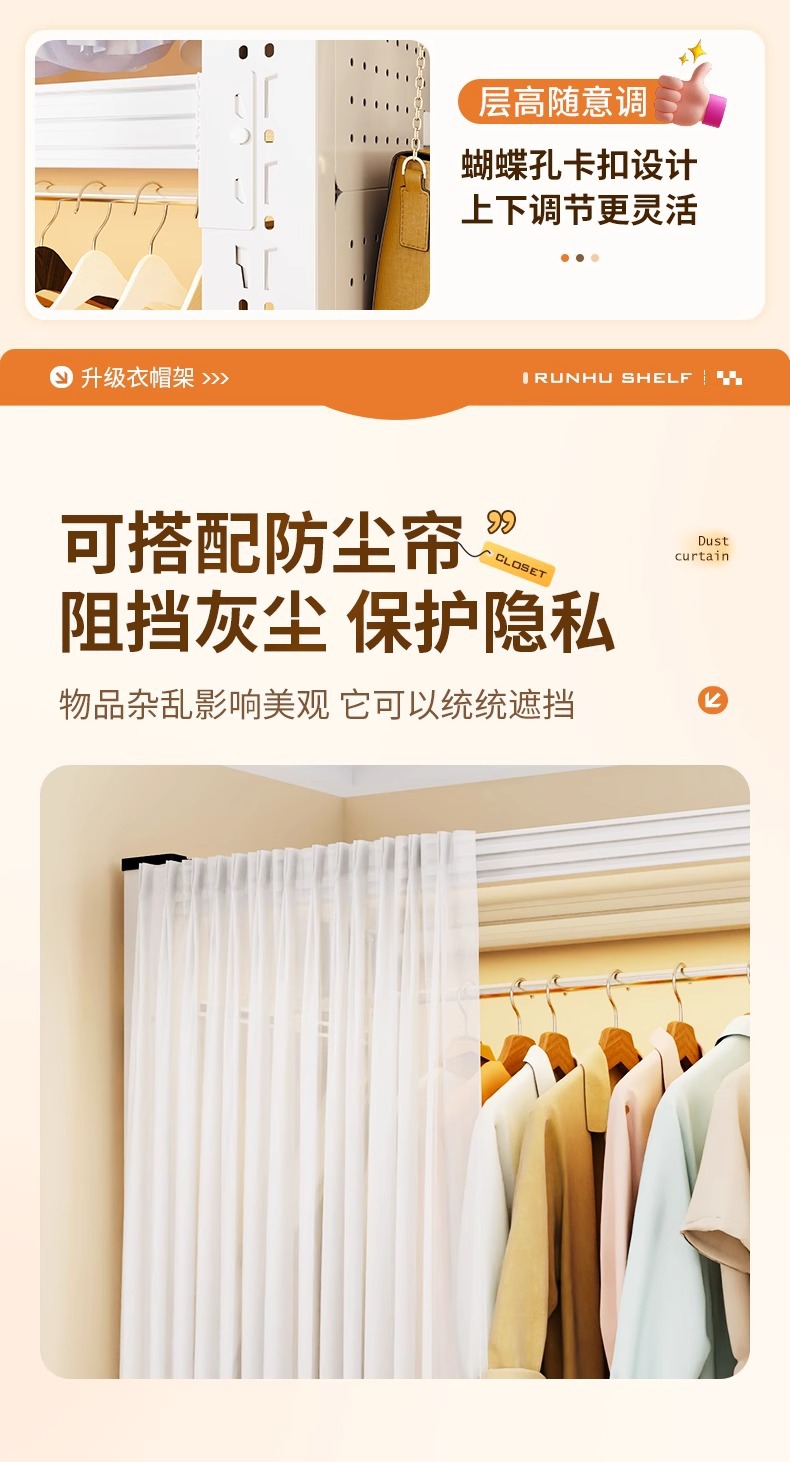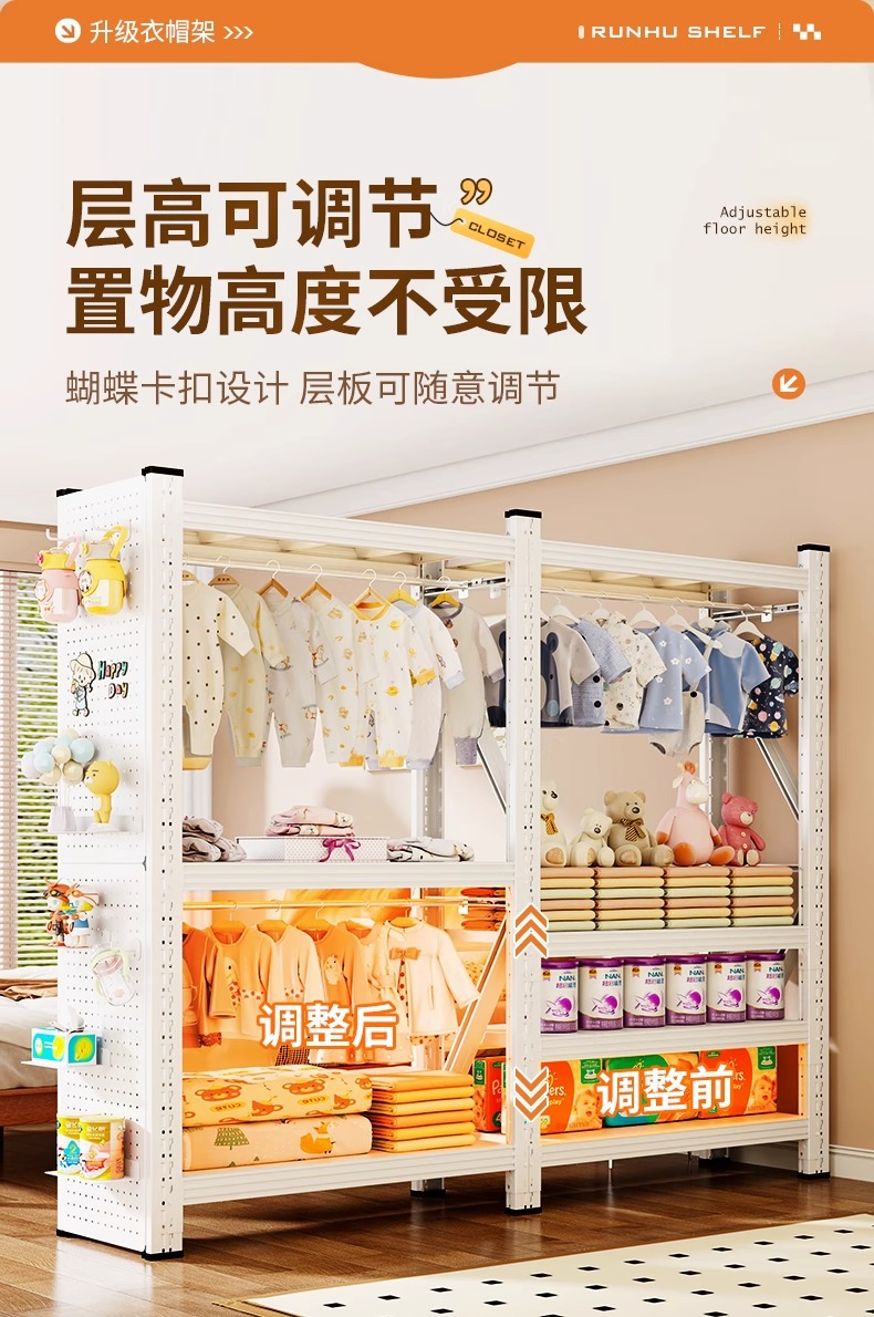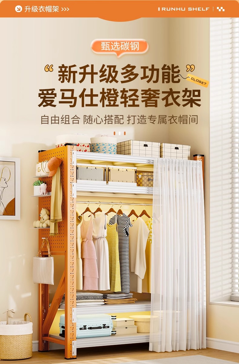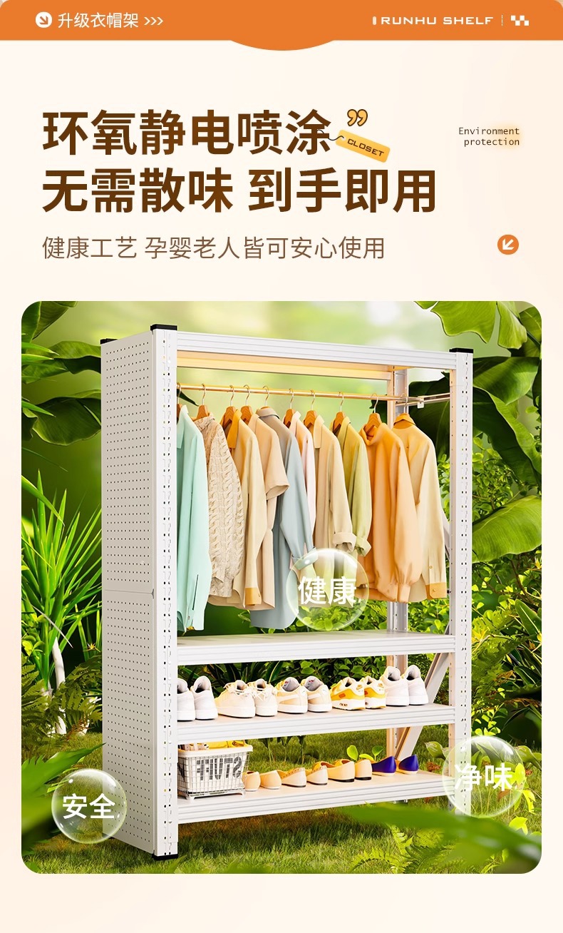 개방형 옷걸이 침실 수납 캐비닛 간단한 조립 바닥 스탠딩 수납 선반 코트 랙 임대실 선반 옷장스토어 가기