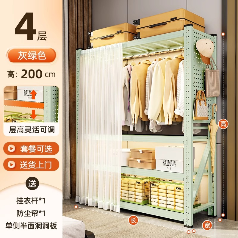 • 그레이-그린 조합 모델: 전체 길이 180*깊이 60*높이 200cm [전면 타공판 + 방진커튼*1+옷장레일*3 포함]