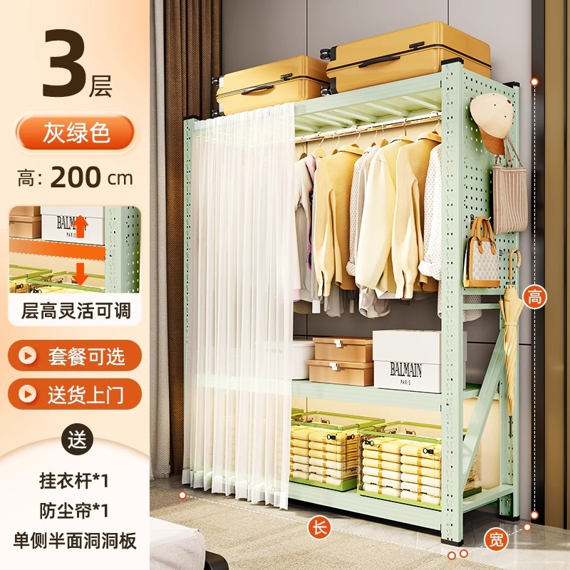 • 그레이 그린 조합 모델: 전체 길이 180*깊이 50*높이 200cm [전면 타공판 + 방진 커튼*1+옷장레일*3 포함]