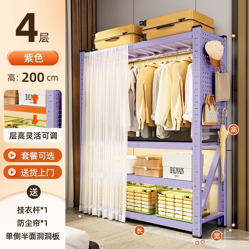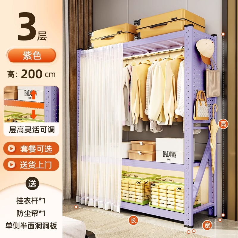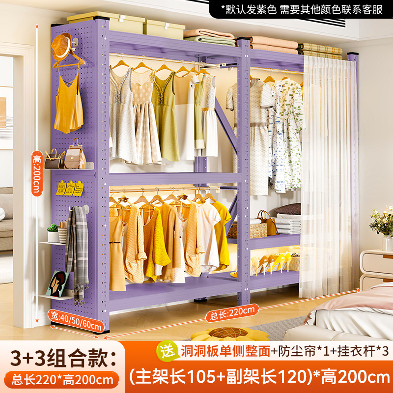 • 보라색 조합 모델: 전체 길이 205*깊이 50*높이 200cm [전면 천공판 + 방진 커튼*1+옷장레일*3 포함]