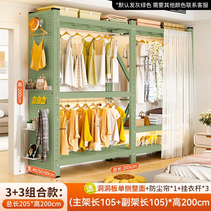 • 그레이 그린 조합 모델: 전체 길이 205*깊이 60*높이 200cm [전면 타공판 + 방진커튼*1+옷장레일*3 포함]