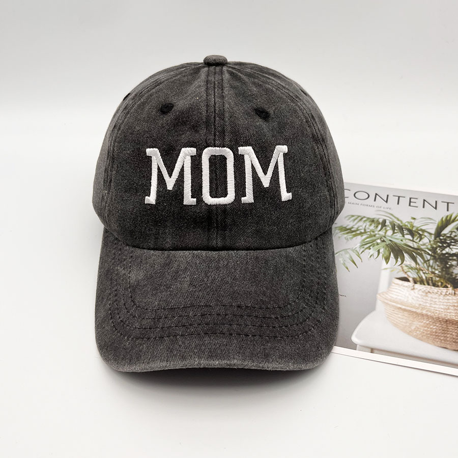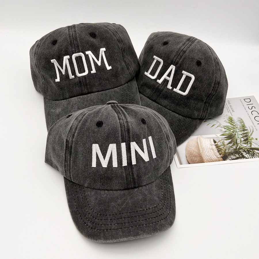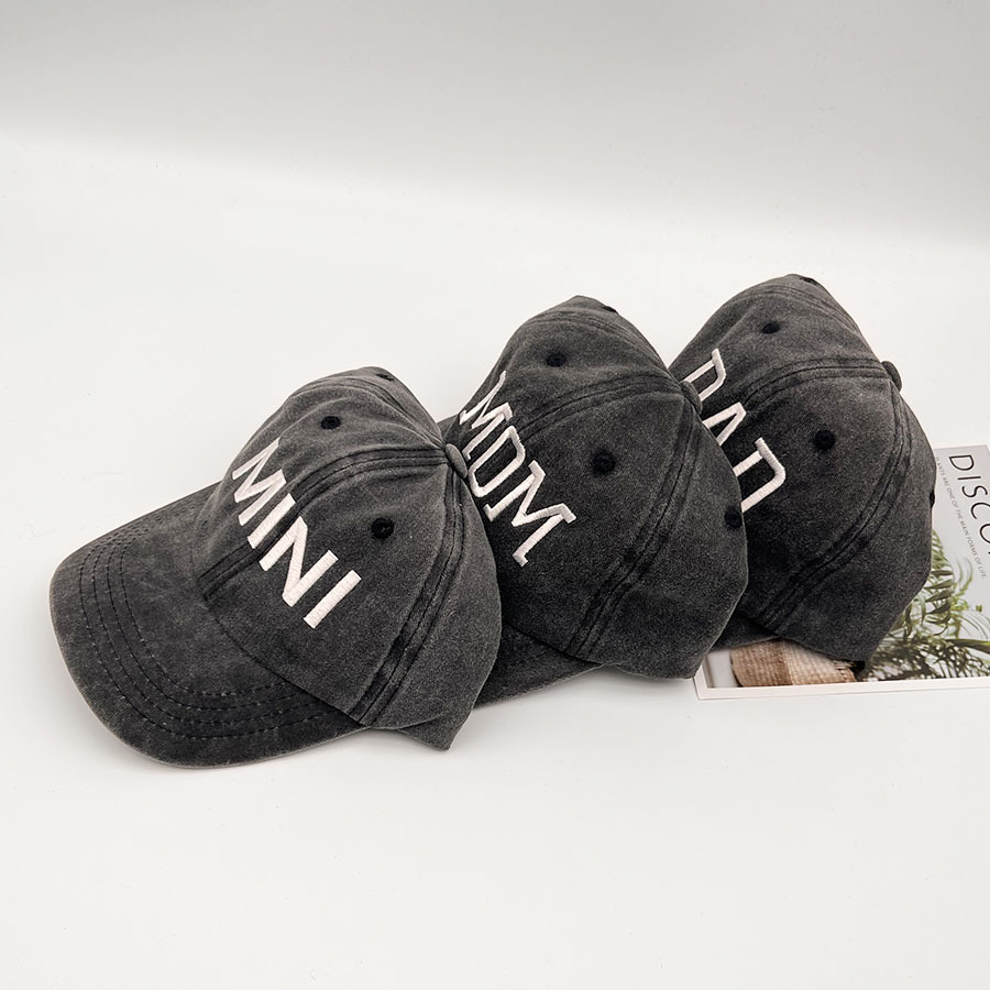 블랙 코튼 워시 캡 문자 자수 외출 캐주얼 모자 아빠와 엄마 아기 부모-자식 모자 남성과 여성의 야구 모자