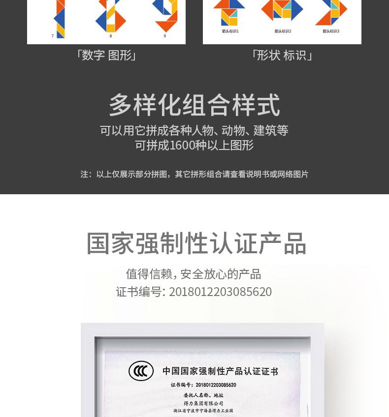 델리 tangram 1 학년 초등학생 지적 퍼즐 pp 보관 상자 유치원 어린이 플라스틱 장난감스토어 가기