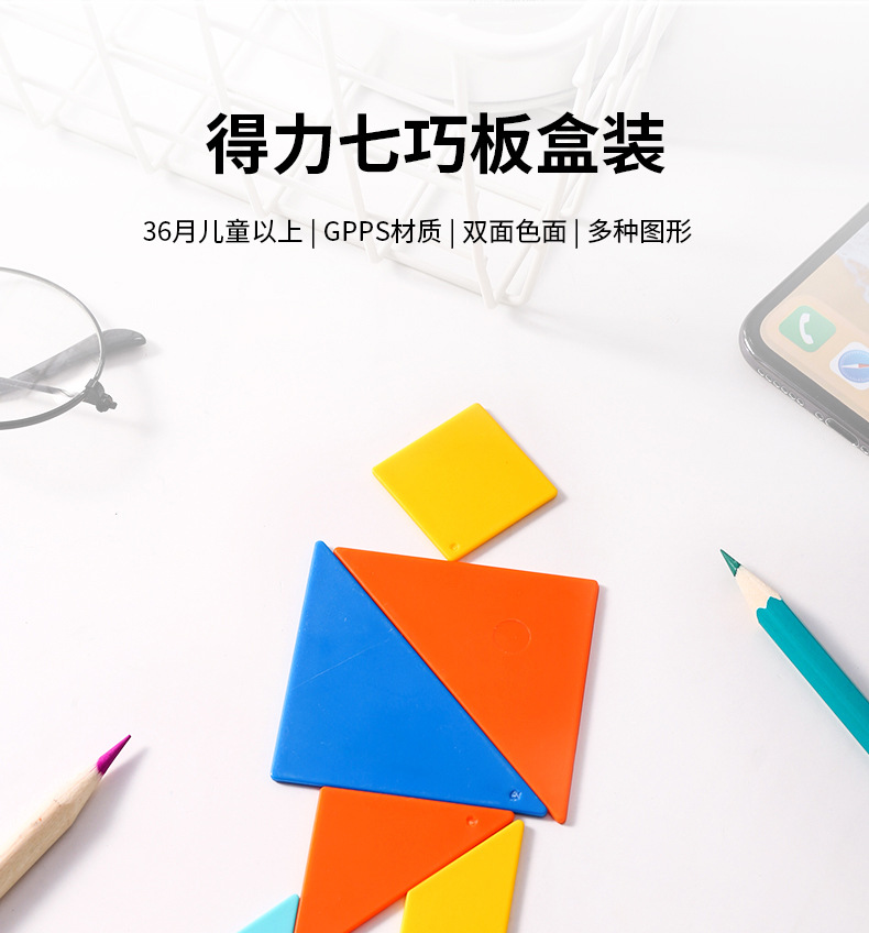 델리 tangram 1 학년 초등학생 지적 퍼즐 pp 보관 상자 유치원 어린이 플라스틱 장난감
