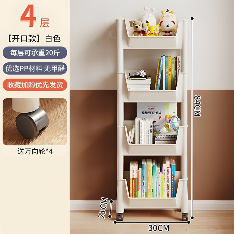 아기 제품 보관함, 아기 침대 옆 유모차, 바닥에 놓인 이동식 다층 간식 장난감 먹이대스토어 가기