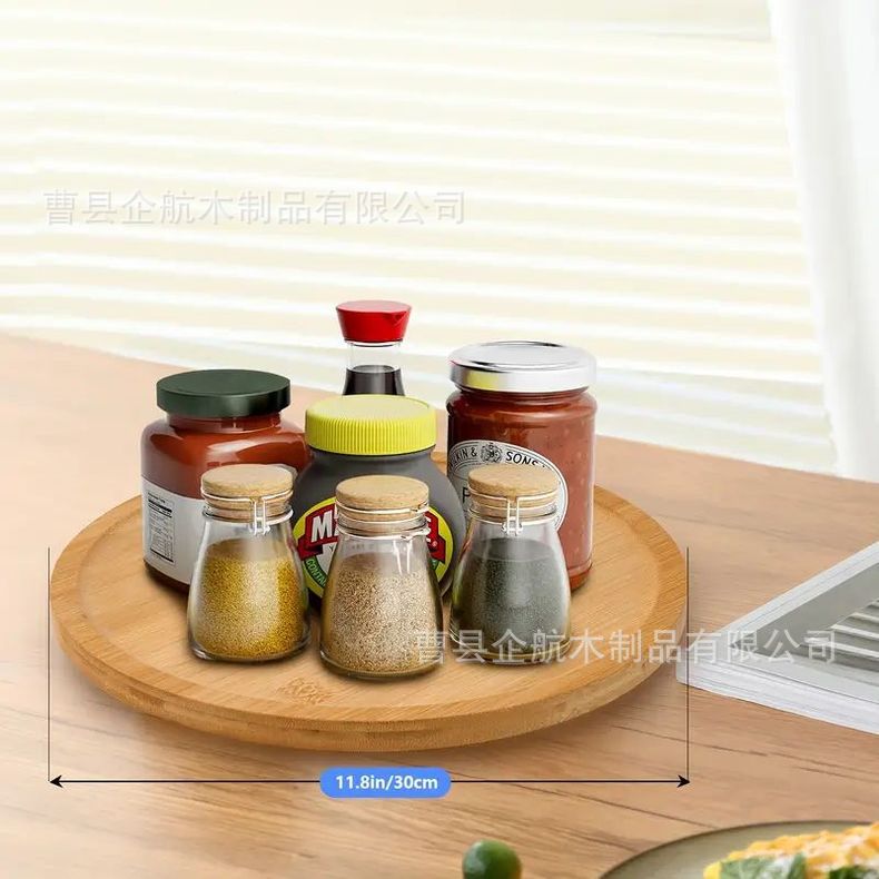 국경 간 단단한 나무 회전식 트레이 홈 주방 조미료 병 데스크탑 잡화 정리 및 보관 트레이 라운드 턴테이블