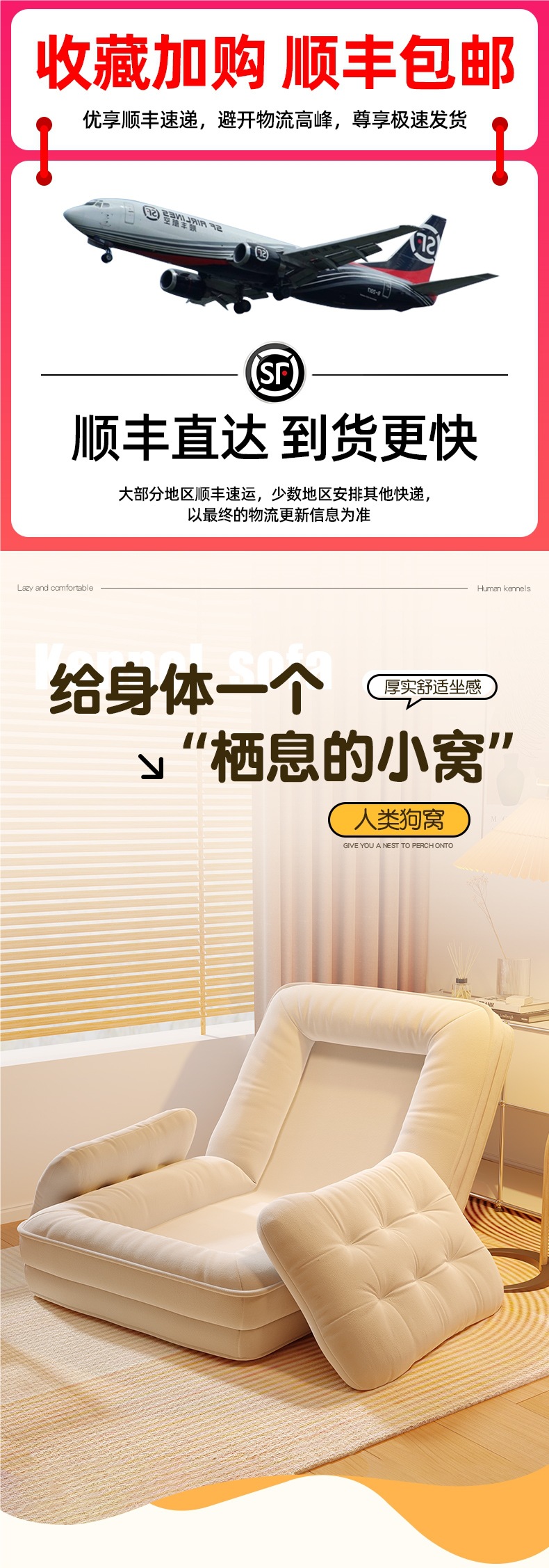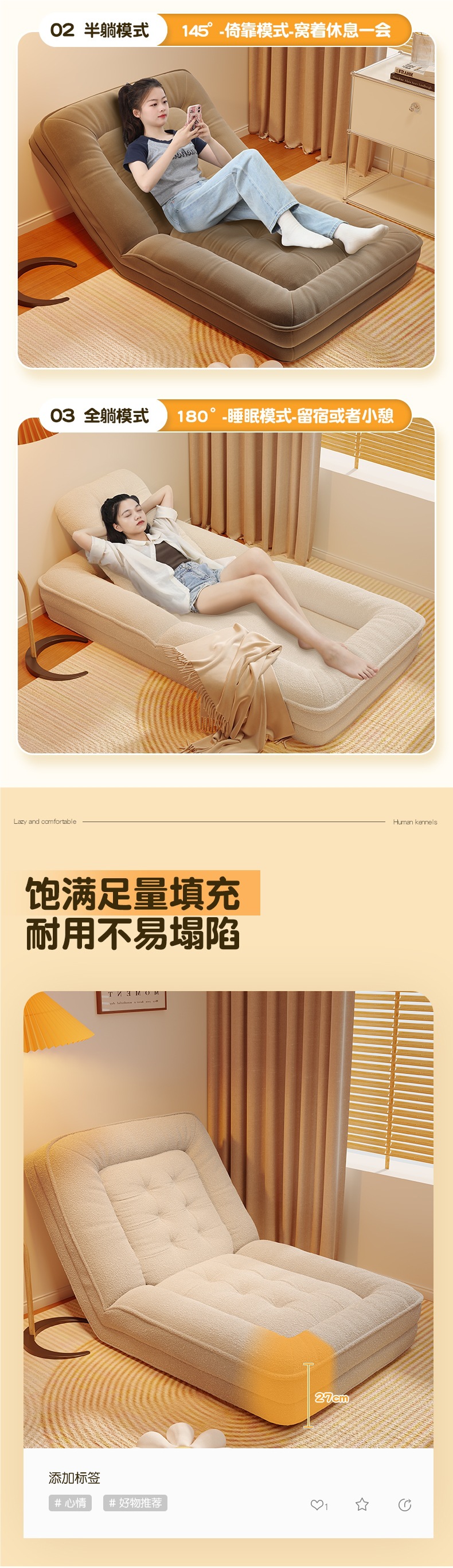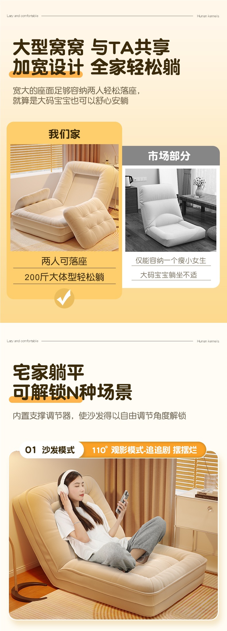 인간 개집 게으른 소파는 누워서 자고 싶을 수 있습니다. 1인용 다다미 대형 접이식 소파 베드 발코니 레저 안락 의자스토어 가기