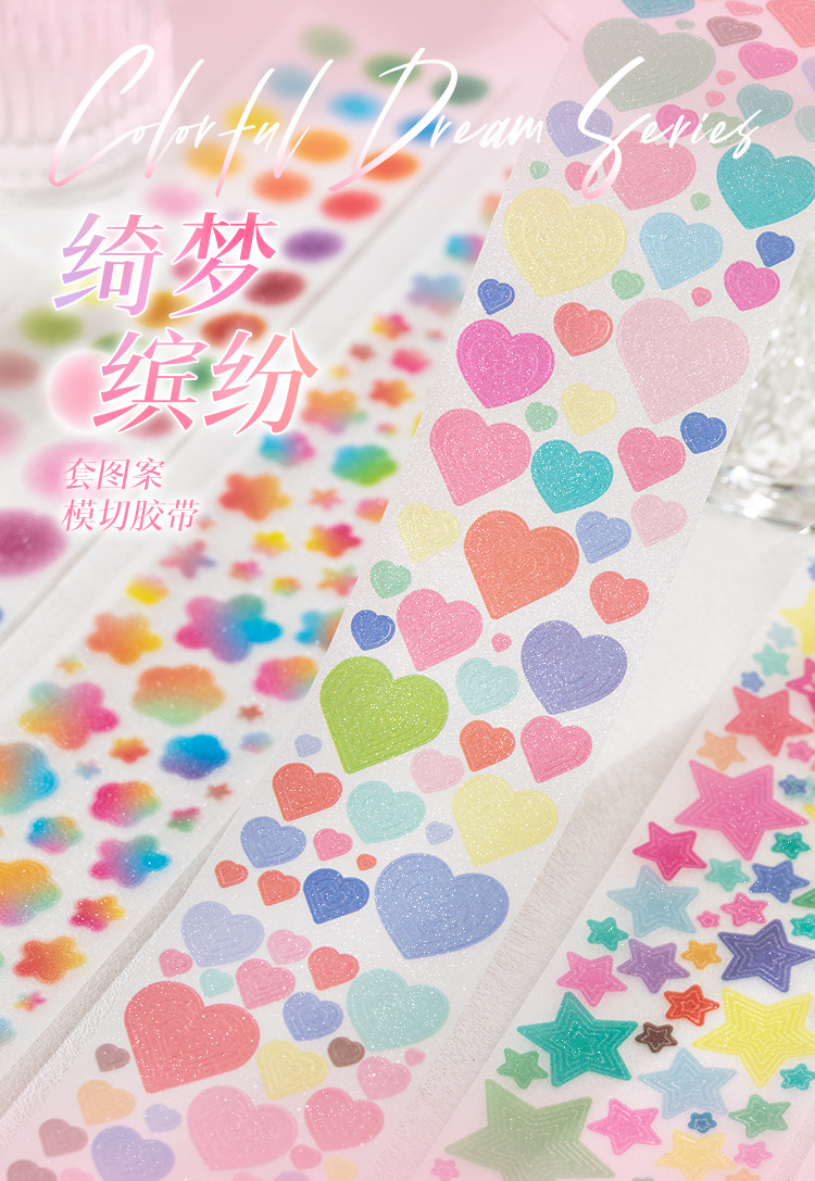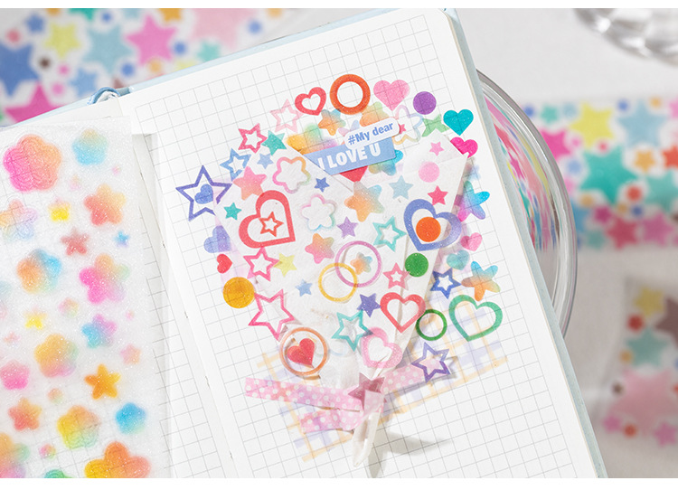 Yuxian 패턴 애완 동물 다이 컷 테이프 Qimeng 다채로운 사랑 별 다목적 핸드북 diy 장식 Guka 스티커