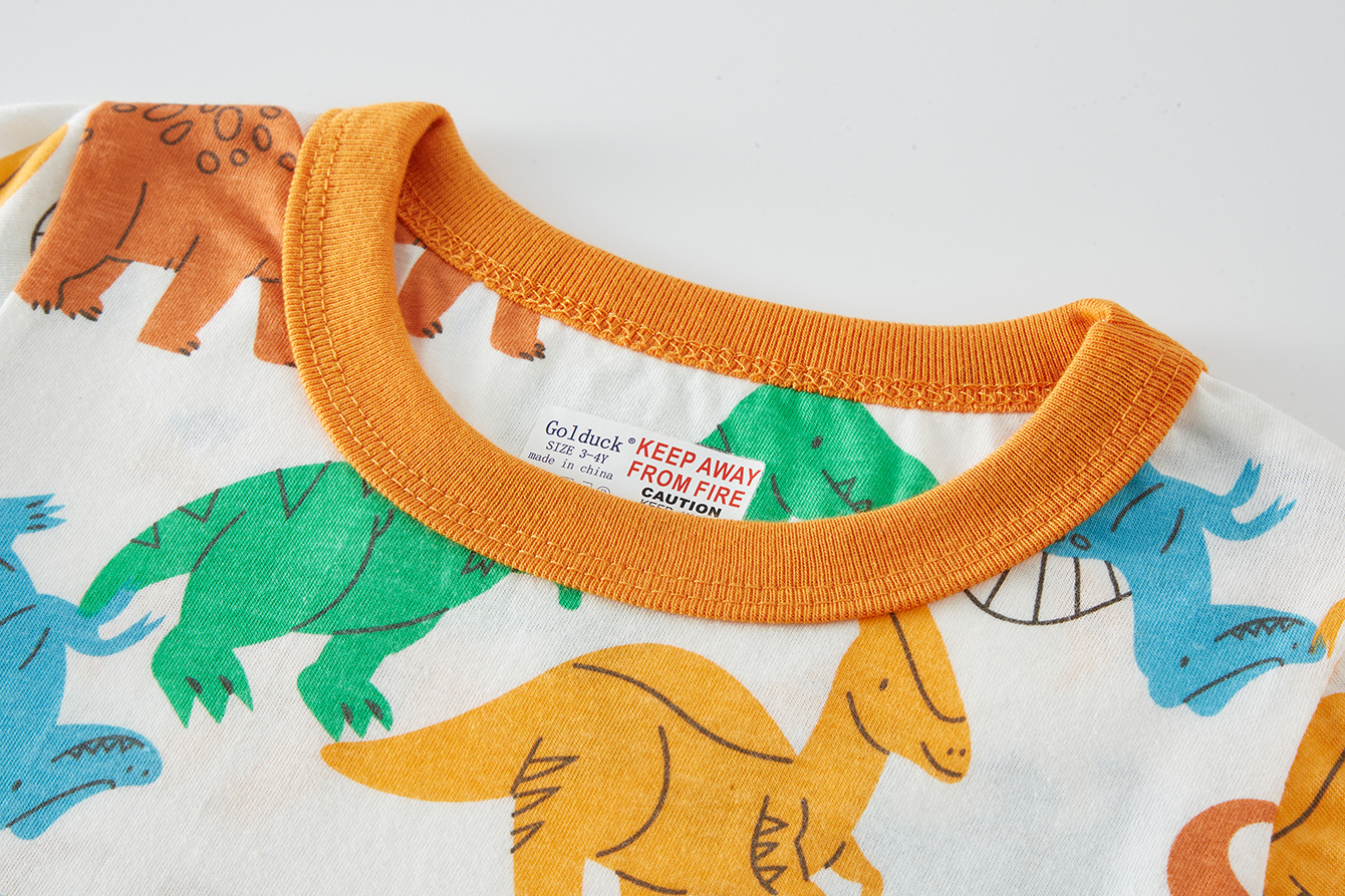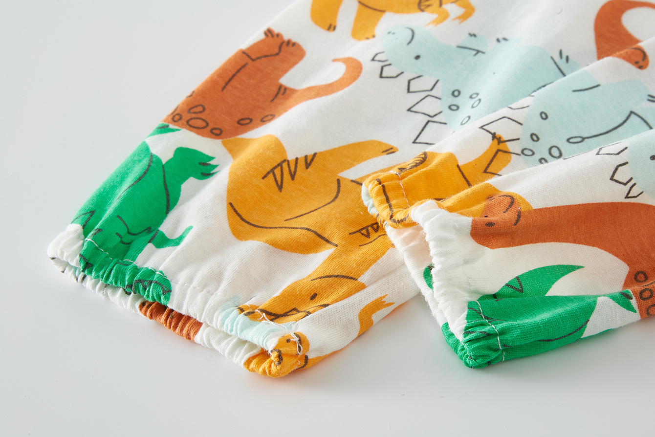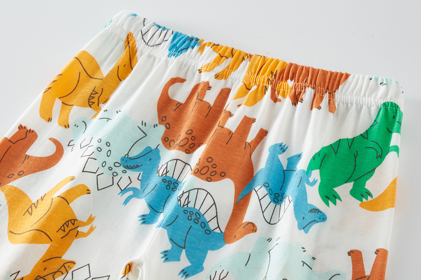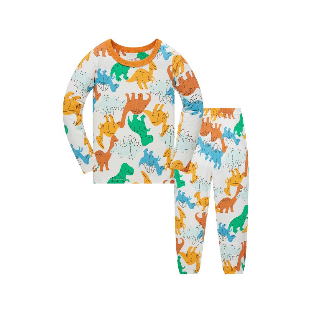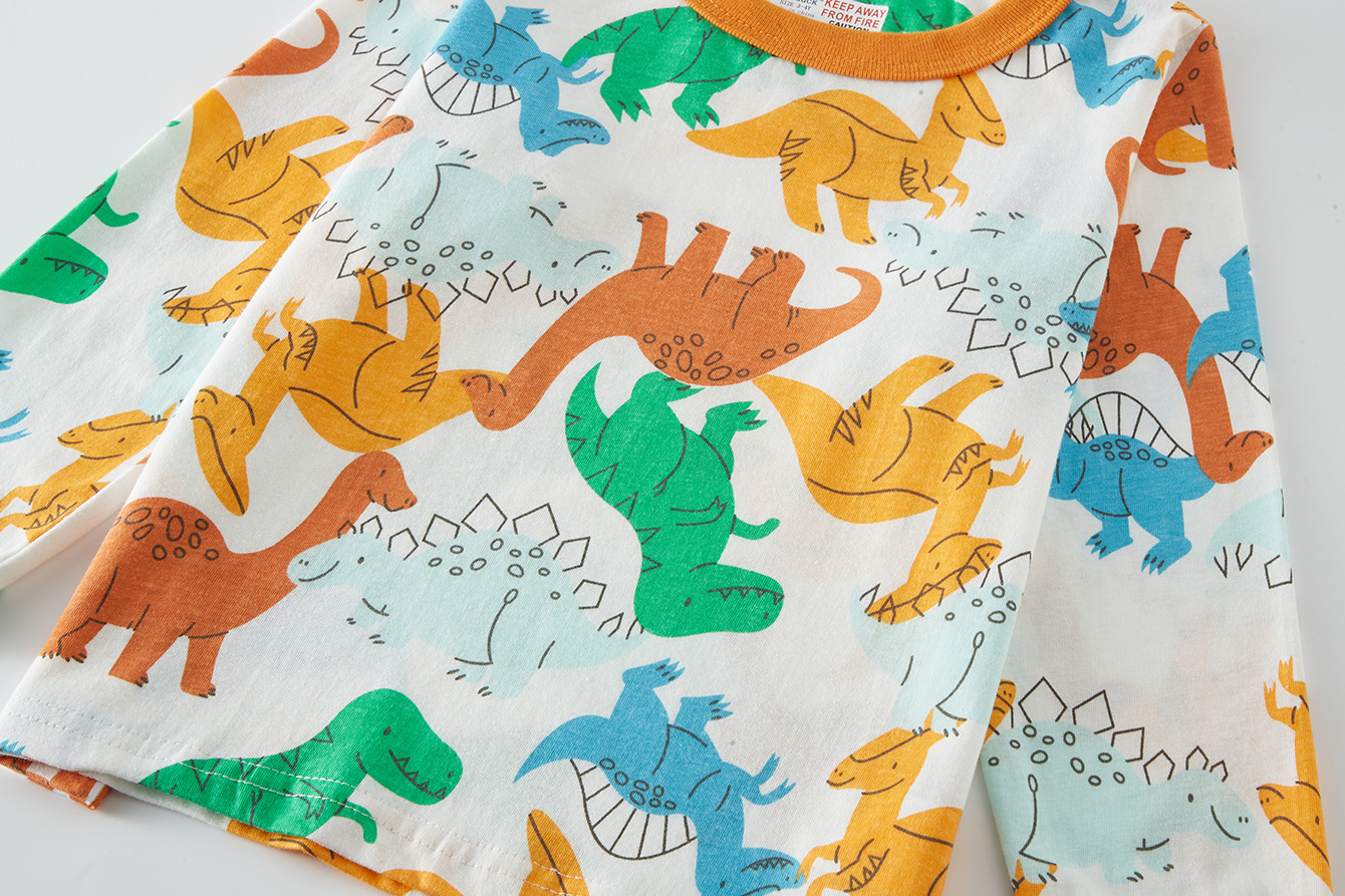 국경 간 봄, 가을 전체 인쇄 공룡 패턴 소년 캐주얼 긴팔 바지 홈웨어 잠옷 세트