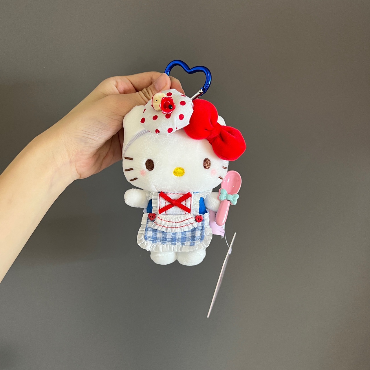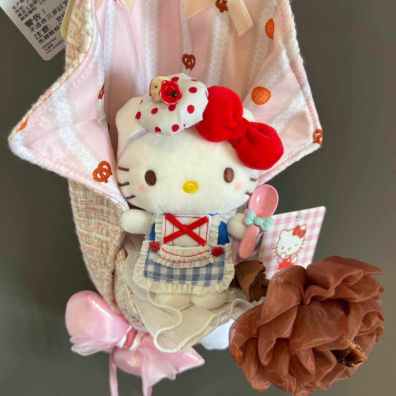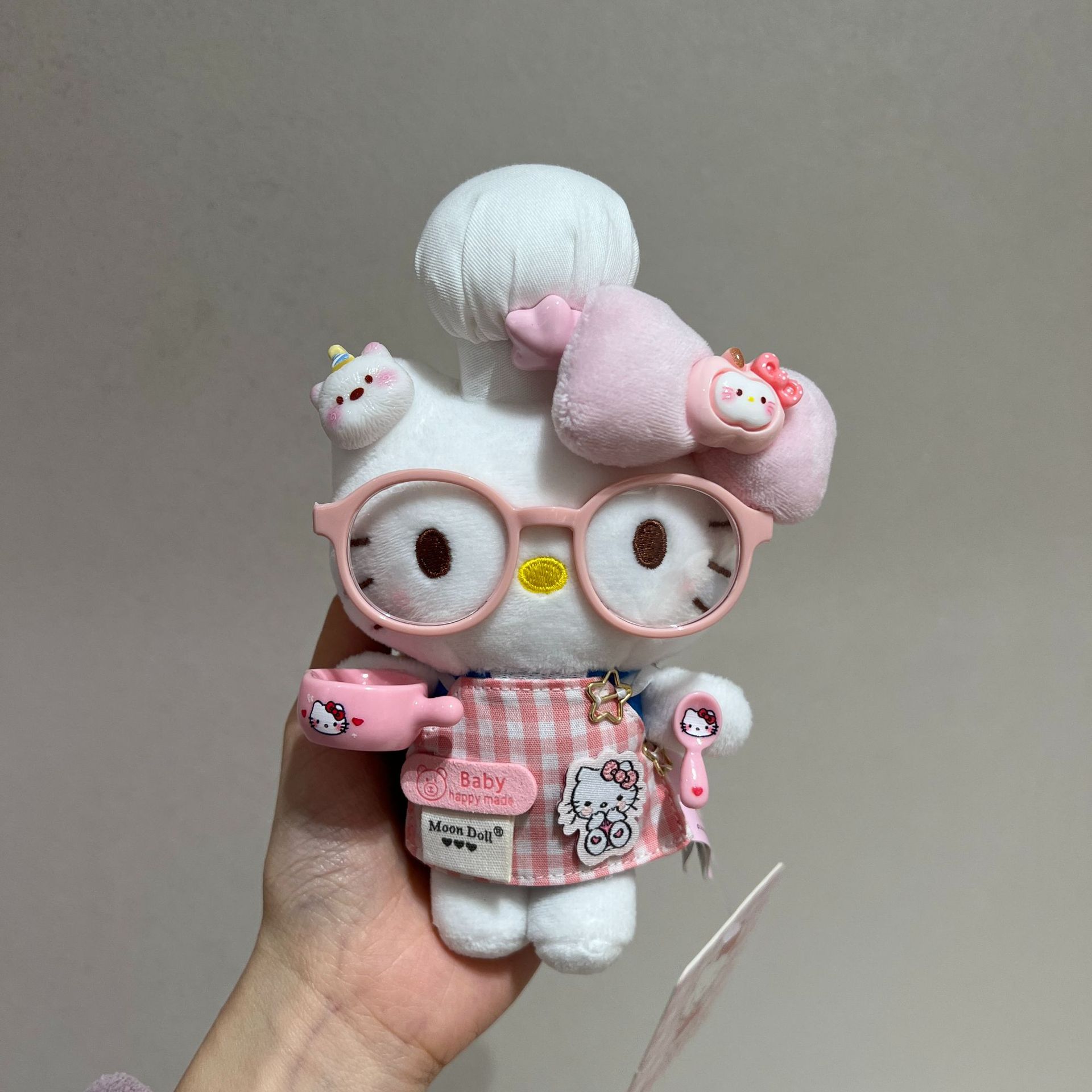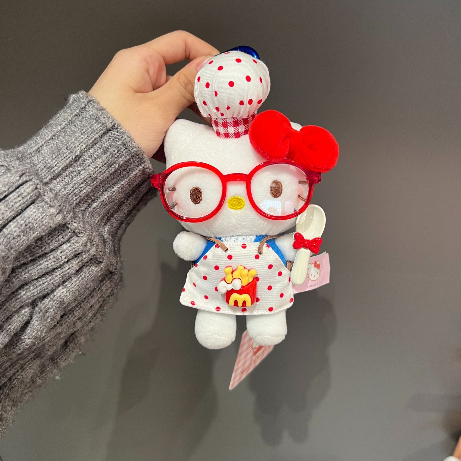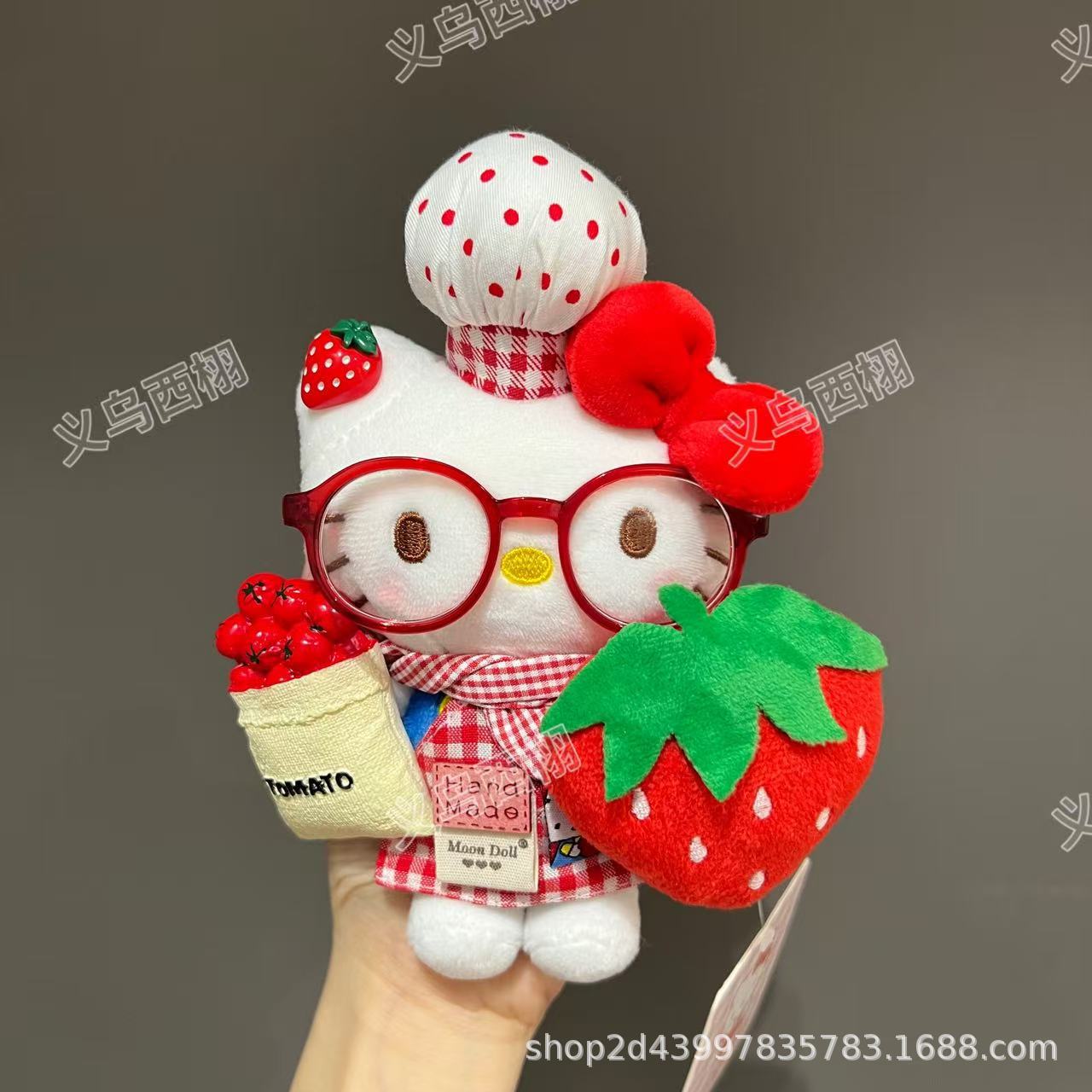 정품 애플 셰프 귀여운 앞치마 키티 귀여운 플러시 펜던트 인형 학교 가방 인형 펜던트 키 체인