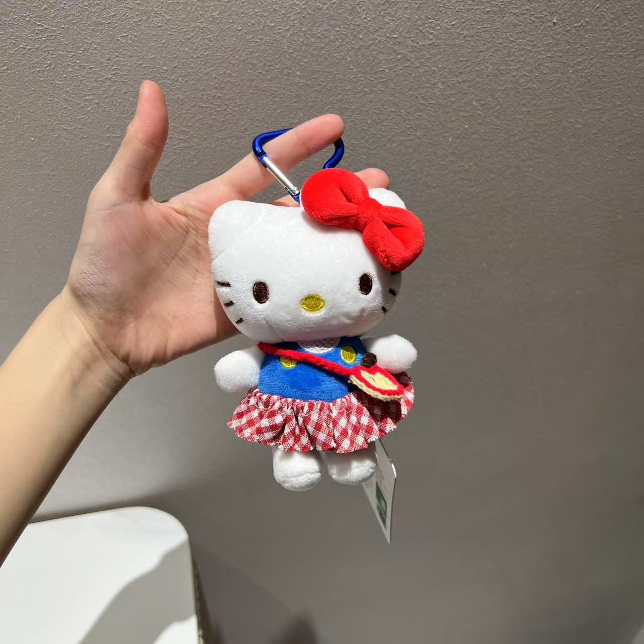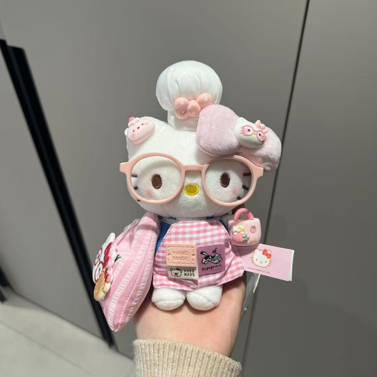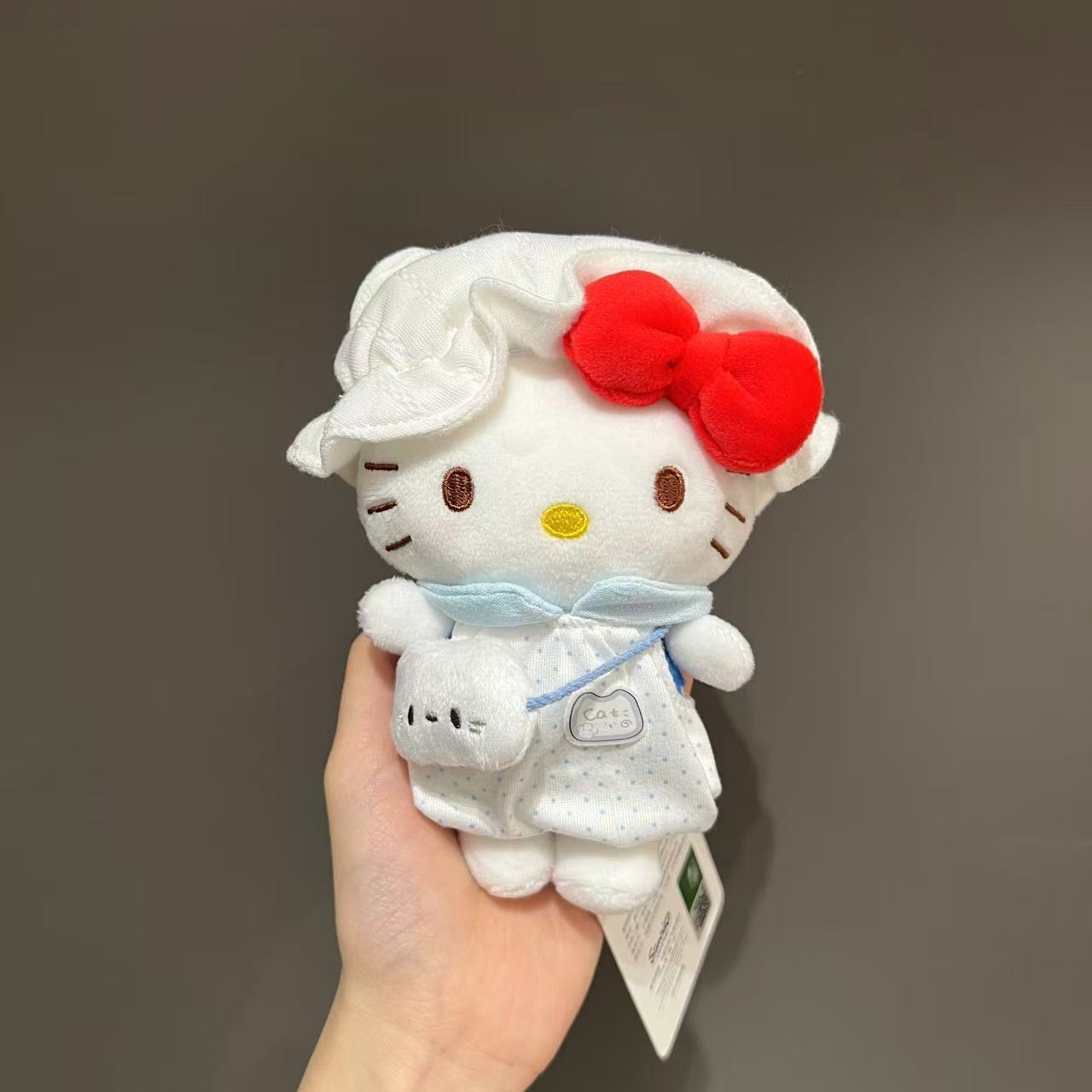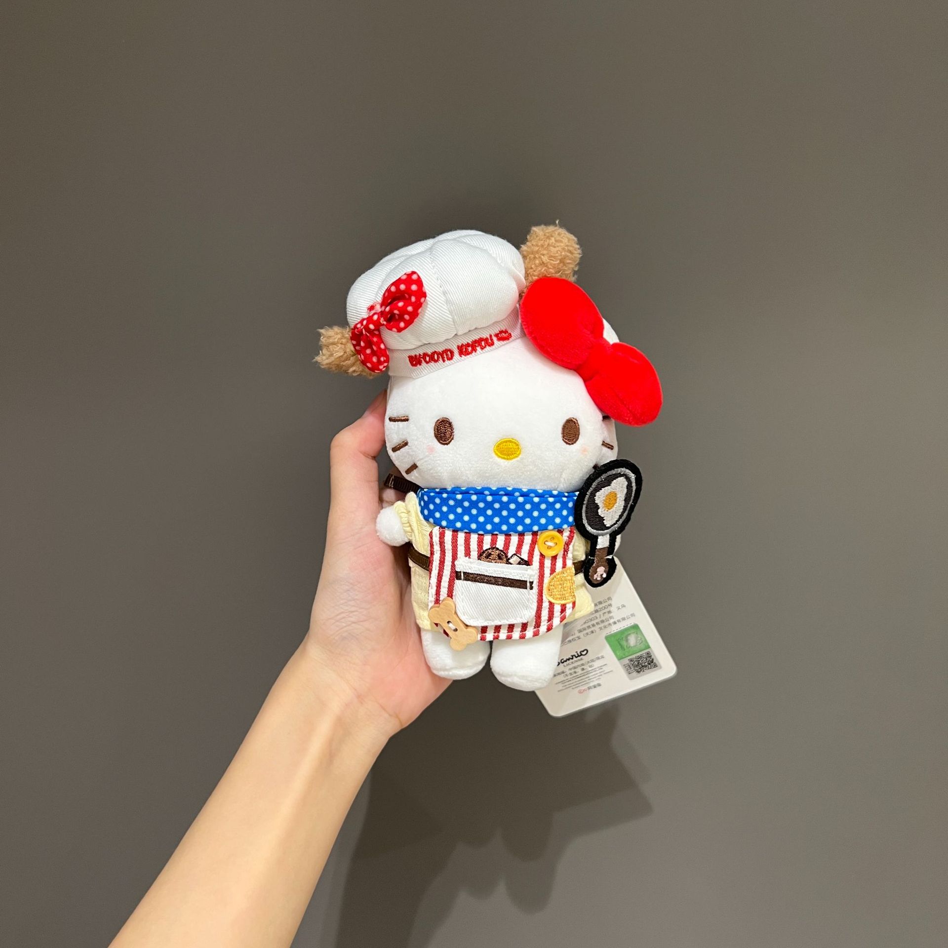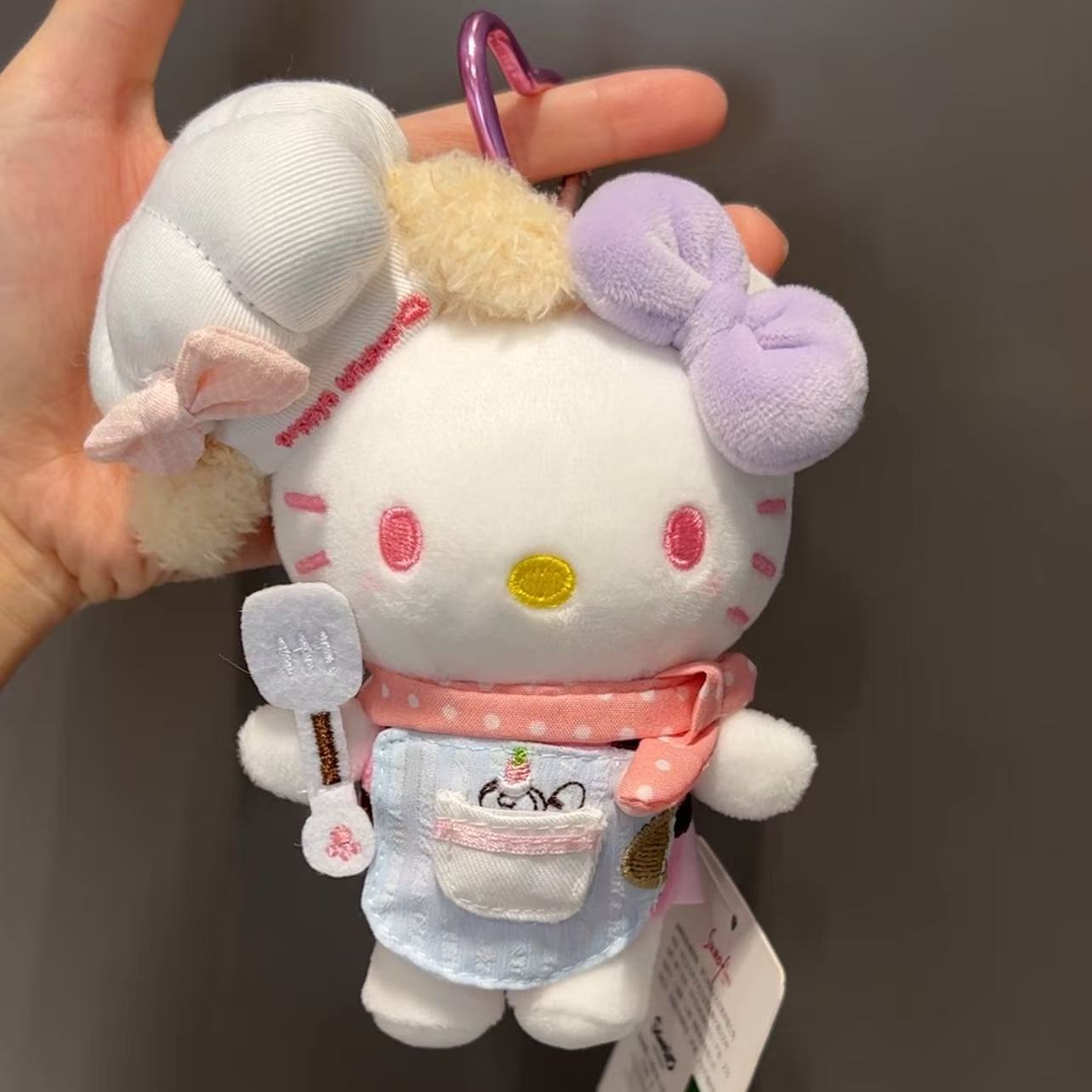 정품 애플 셰프 귀여운 앞치마 키티 귀여운 플러시 펜던트 인형 학교 가방 인형 펜던트 키 체인스토어 가기