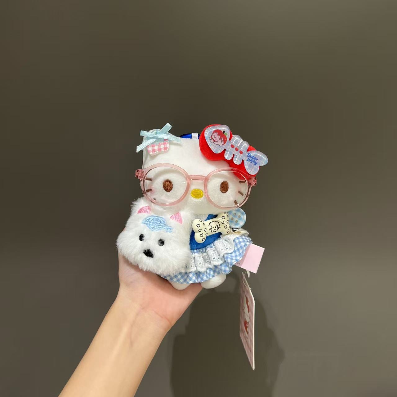 • 파란색과 흰색 체리 턱받이 키티 [안경 포함]