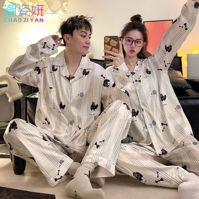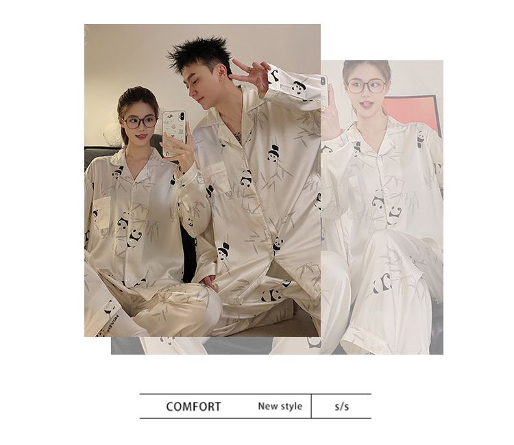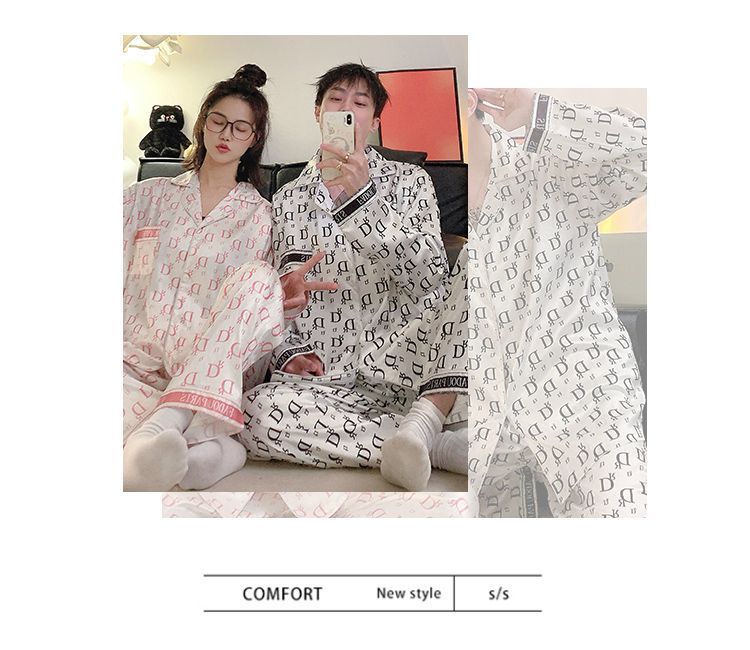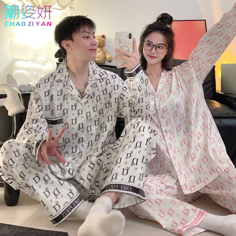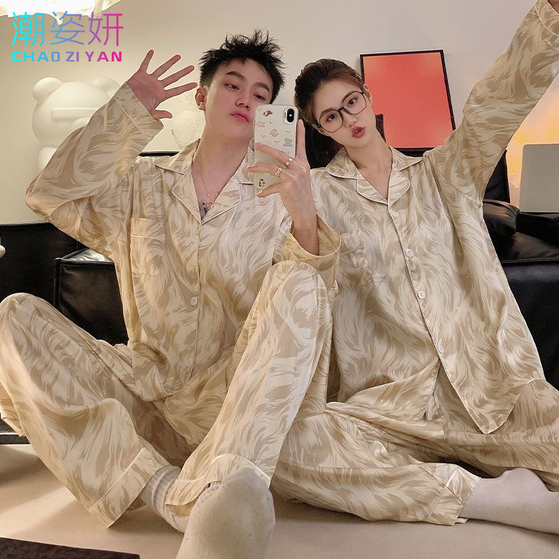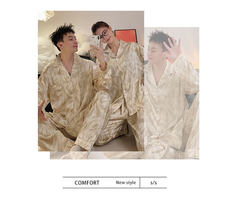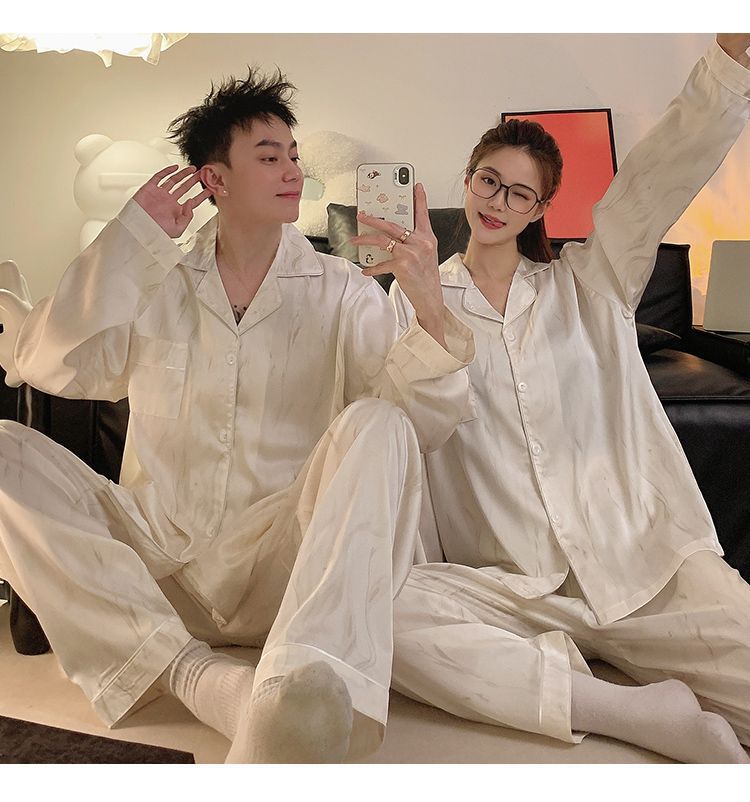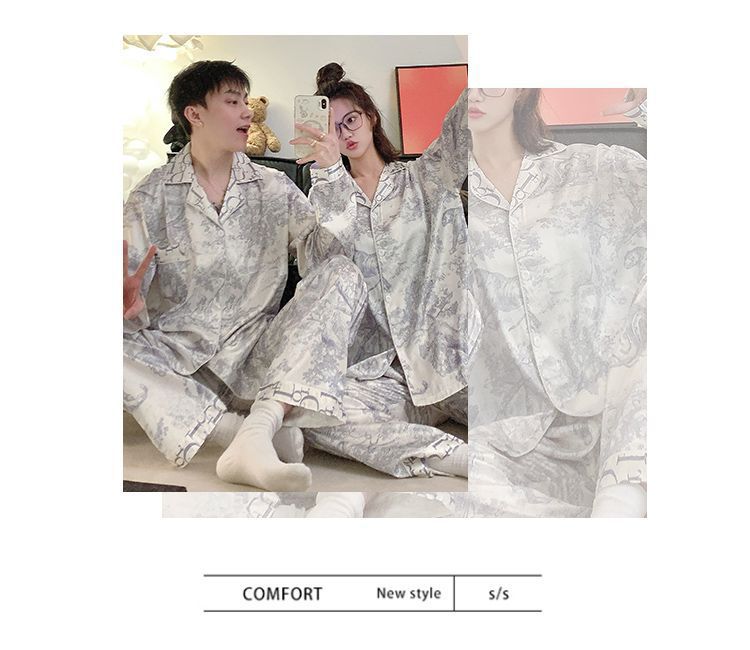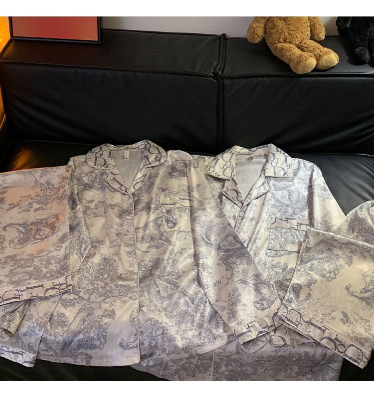 여성을위한 봄과 가을 새로운 캐주얼 얼음 실크 잠옷 하이 엔드 카디건 긴팔 대형 라이트 럭셔리 얼음과 얼음 실크 홈웨어 세트스토어 가기