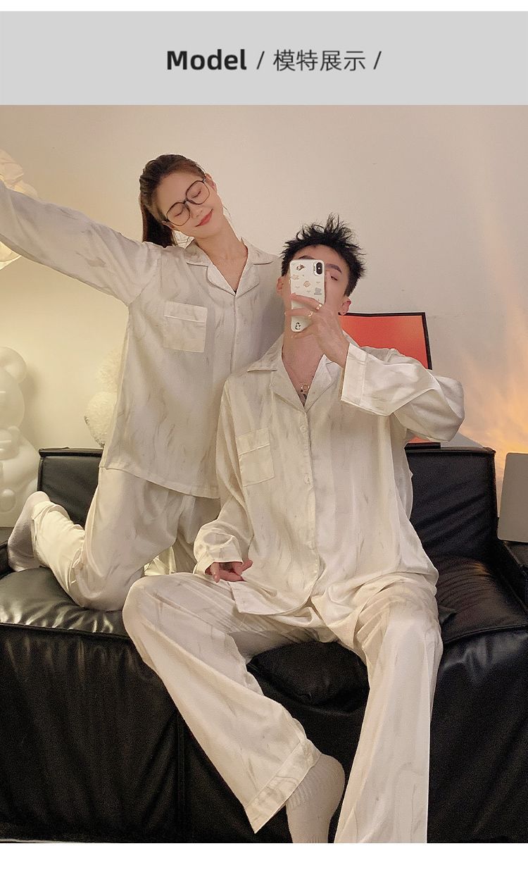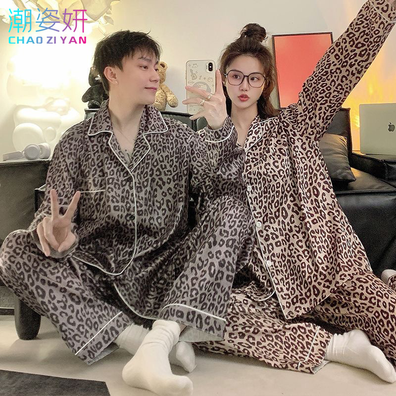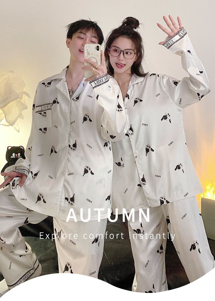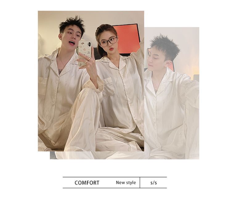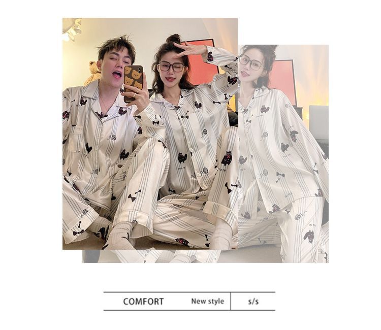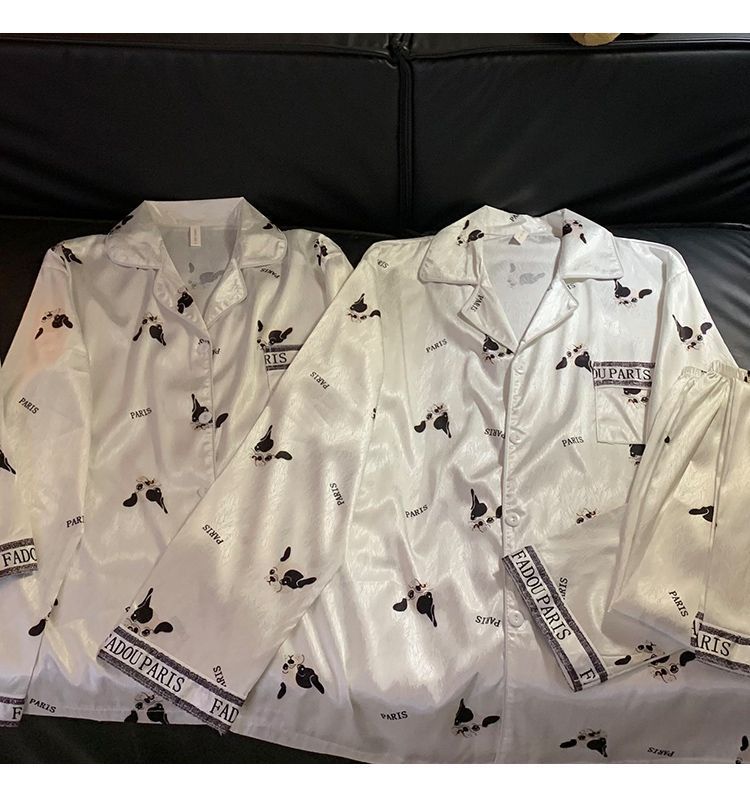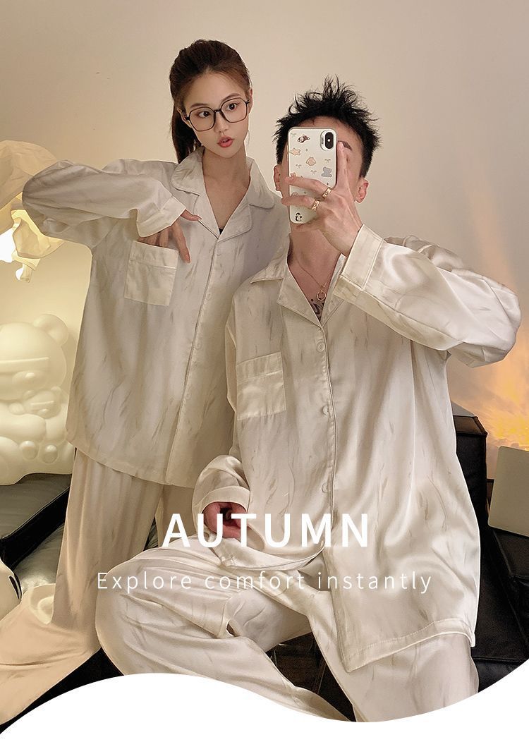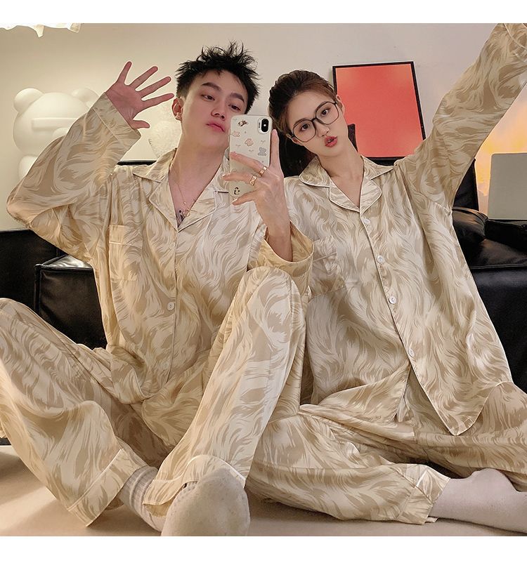 여성을위한 봄과 가을 새로운 캐주얼 얼음 실크 잠옷 하이 엔드 카디건 긴팔 대형 라이트 럭셔리 얼음과 얼음 실크 홈웨어 세트스토어 가기