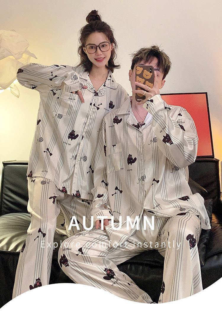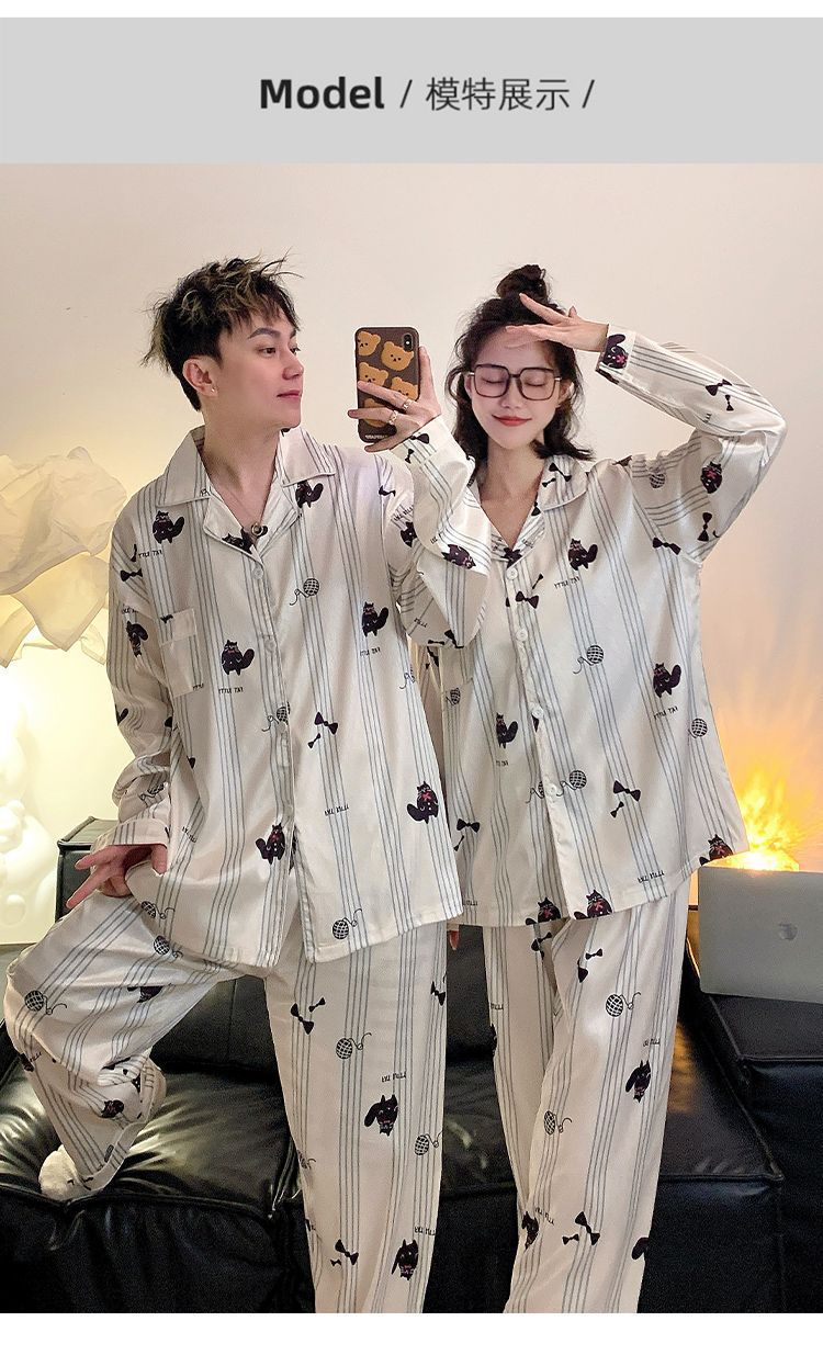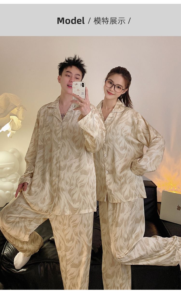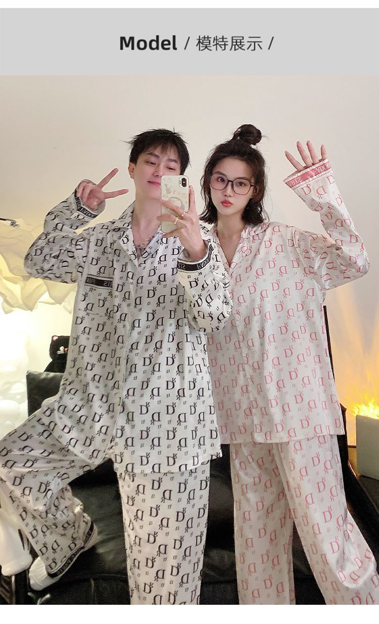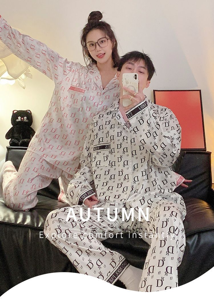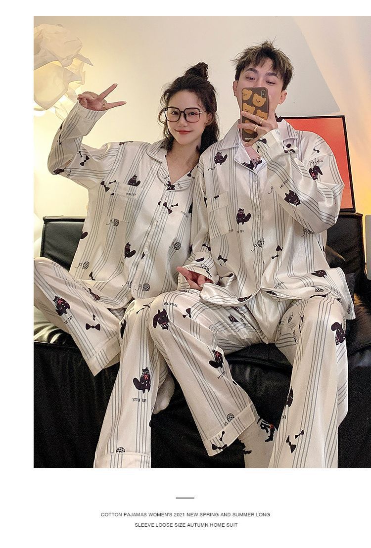여성을위한 봄과 가을 새로운 캐주얼 얼음 실크 잠옷 하이 엔드 카디건 긴팔 대형 라이트 럭셔리 얼음과 얼음 실크 홈웨어 세트스토어 가기