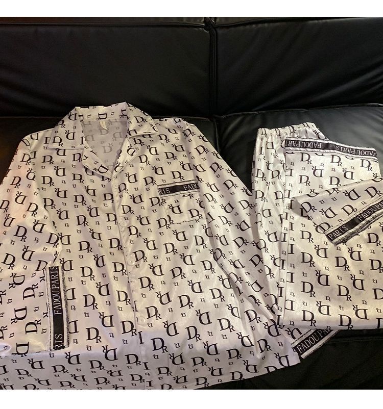 여성을위한 봄과 가을 새로운 캐주얼 얼음 실크 잠옷 하이 엔드 카디건 긴팔 대형 라이트 럭셔리 얼음과 얼음 실크 홈웨어 세트
