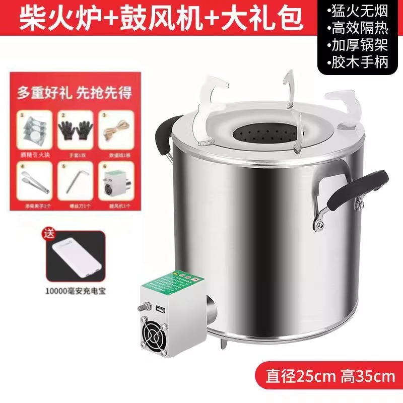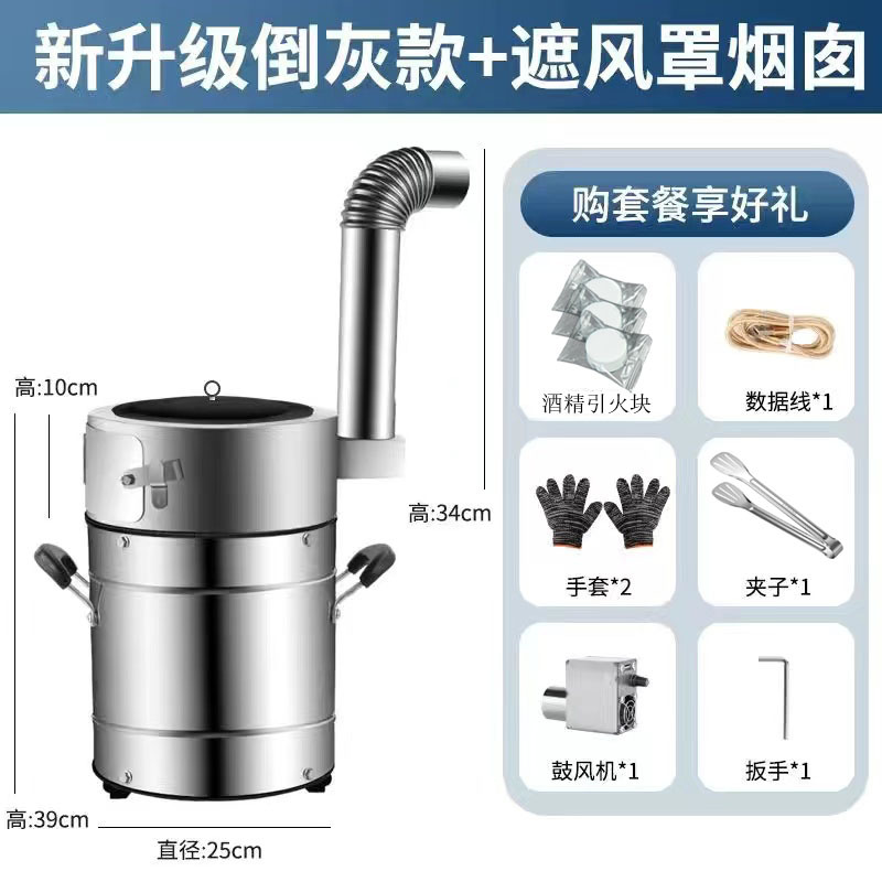 • 두꺼운 재 난로 + 방풍 굴뚝 + 팬 + 선물 가방
