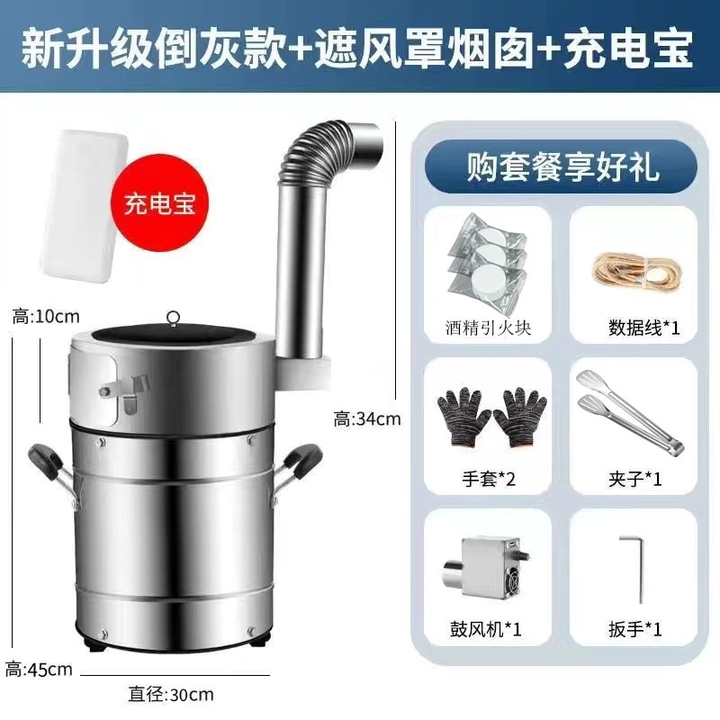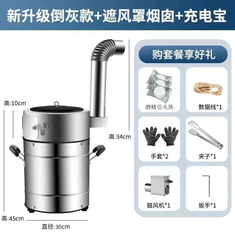 • 두꺼운 재 배출구 모델 + 스토브 + 방풍 커버 + 팬 + 선물 + 보조베터리