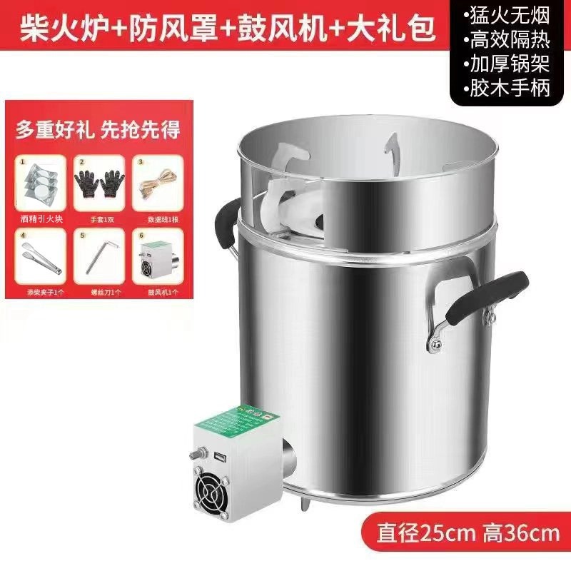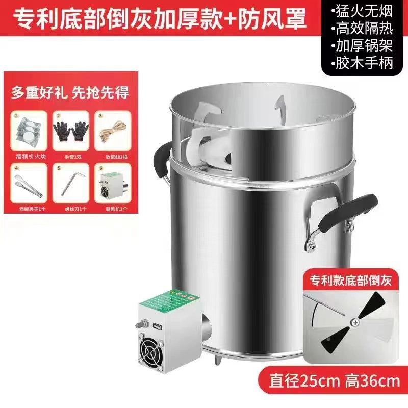 • 두꺼운 재 배출구 + 스토브 + 방풍 커버 + 팬 + 선물