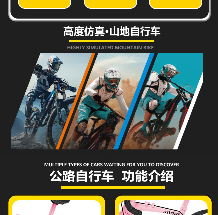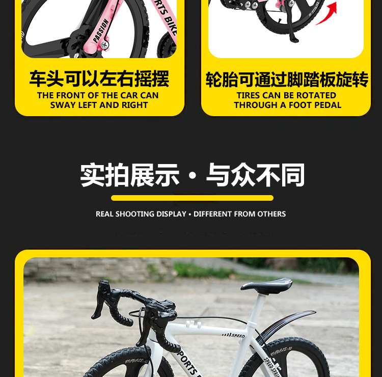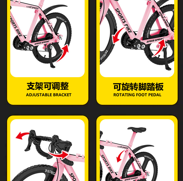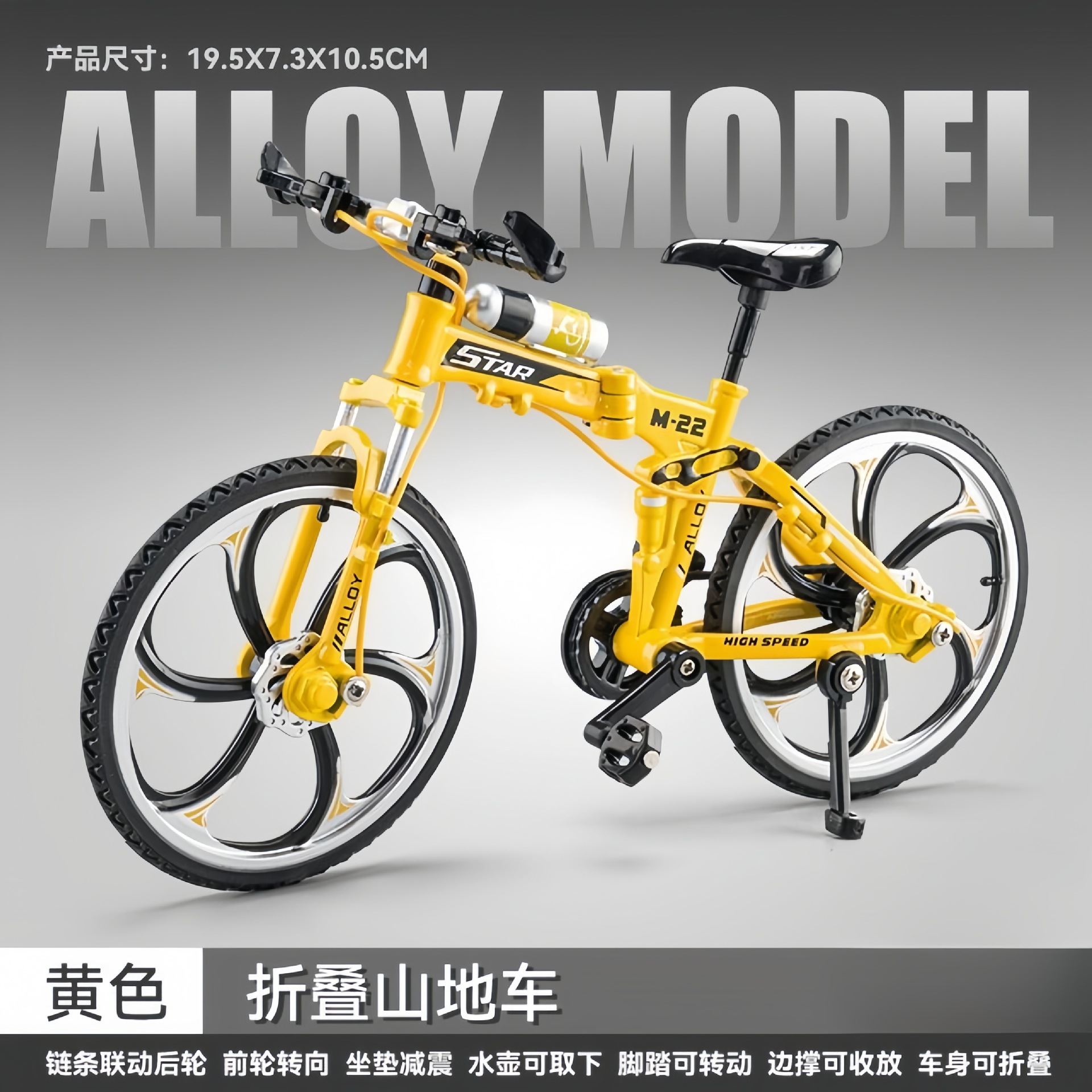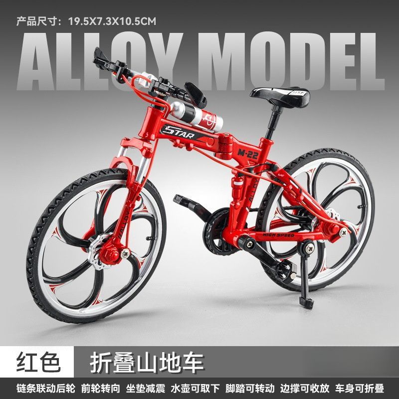 Douyin 가변 속도 산악 자전거 모델 접이식 내리막 합금 자전거 자전거 장식품 장난감 자동차 모델 드롭 배송
