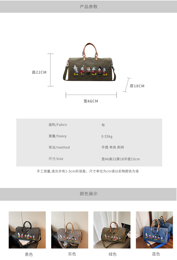 국경을 넘나드는 패셔너블하고 멋진 남성용 피트니스 가방, 단거리 대용량 휴대용 여행 가방, 귀여운 도널드 덕 단거리 출장 가방스토어 가기