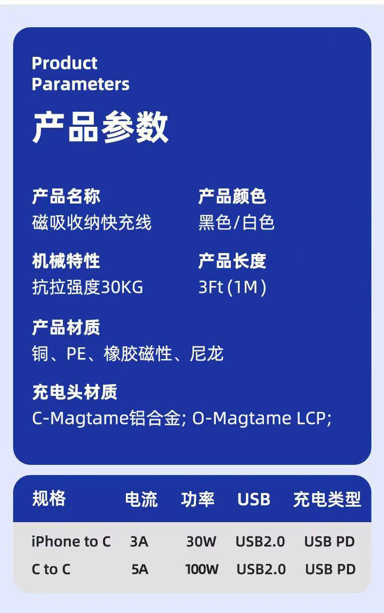 • 자석식 C-C / 1m (애플 15/16 시리즈 및 안드로이드 시리즈 호환) [중문 포장]