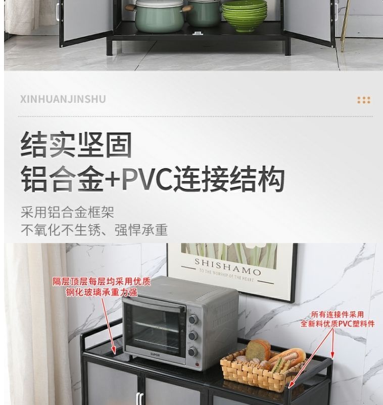 다기능 간단한 주방 캐비닛 찬장 찬장 알루미늄 합금 차 캐비닛 보관 캐비닛 잔해물 캐비닛 조립