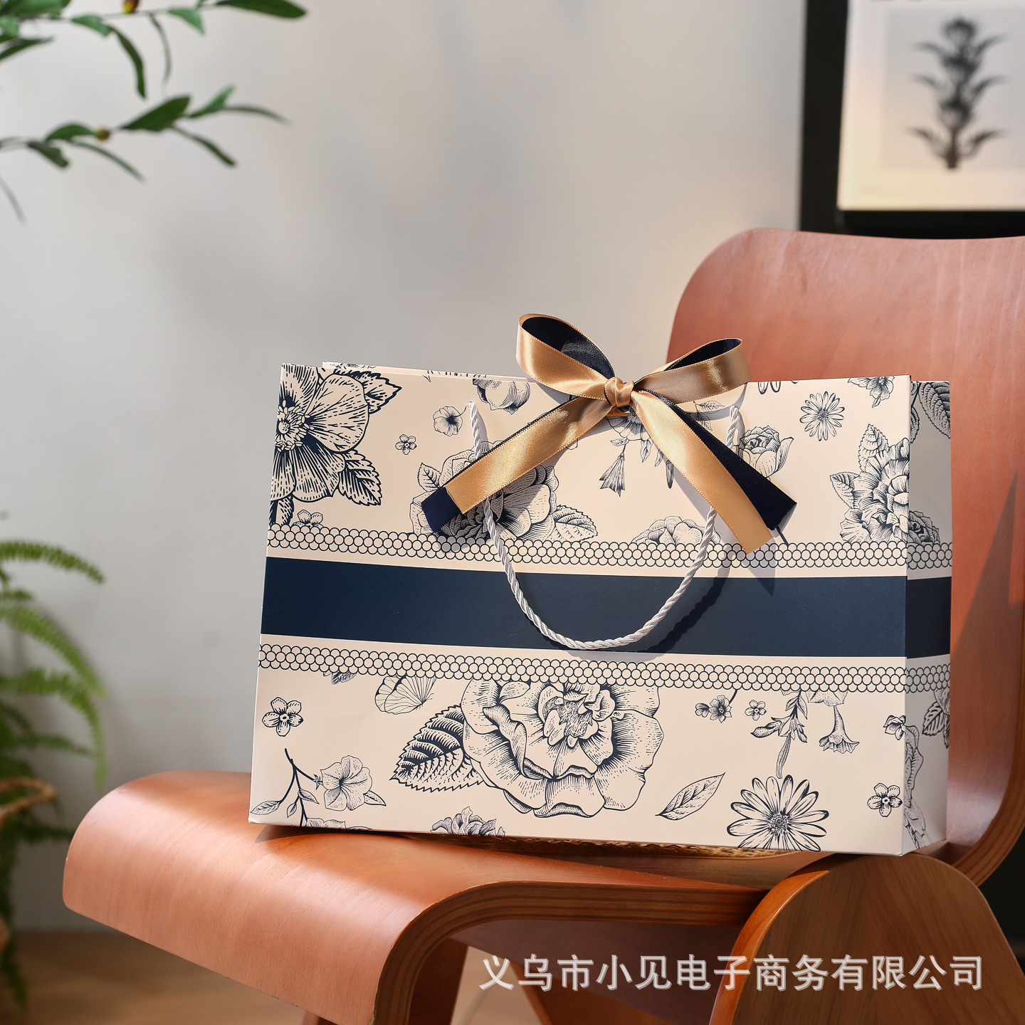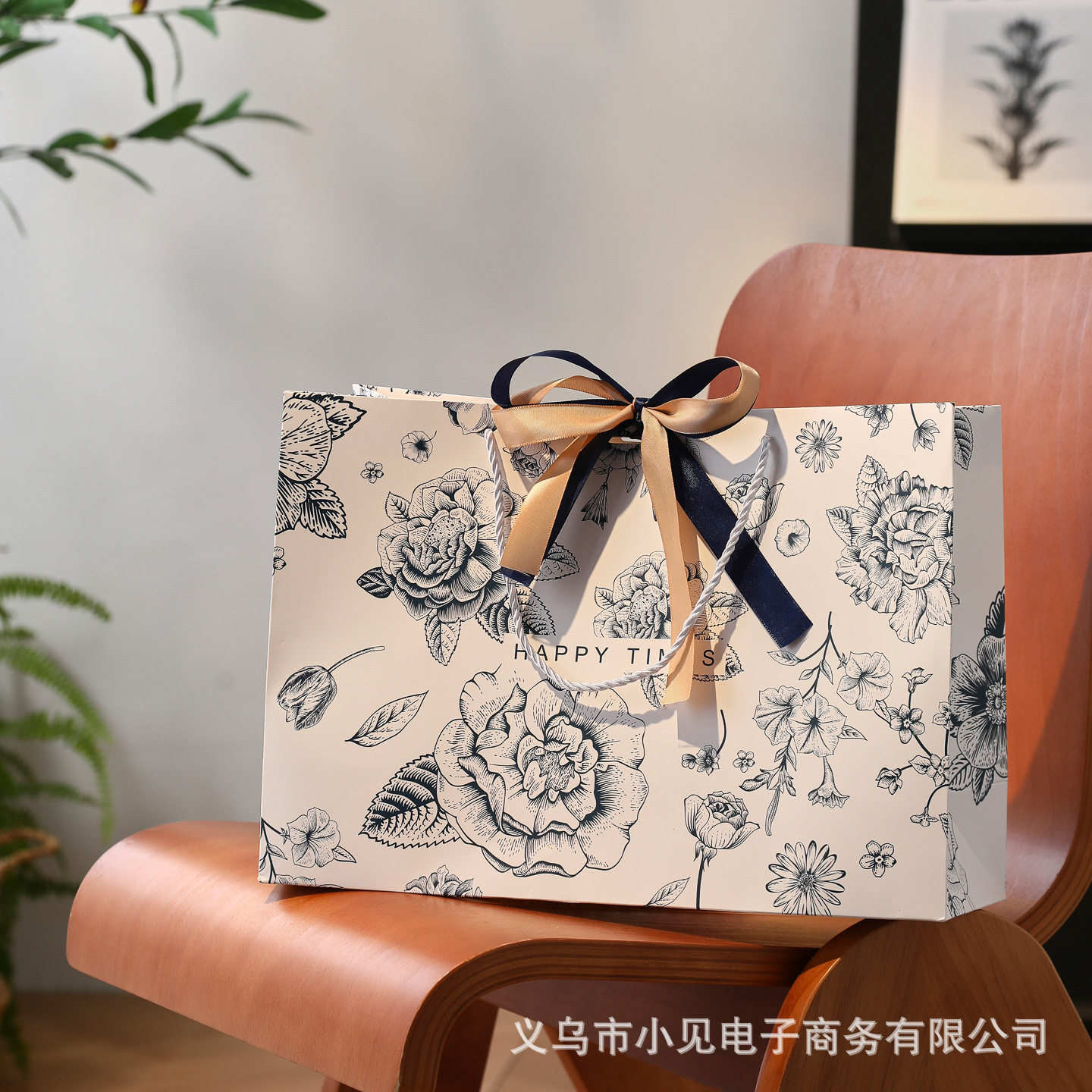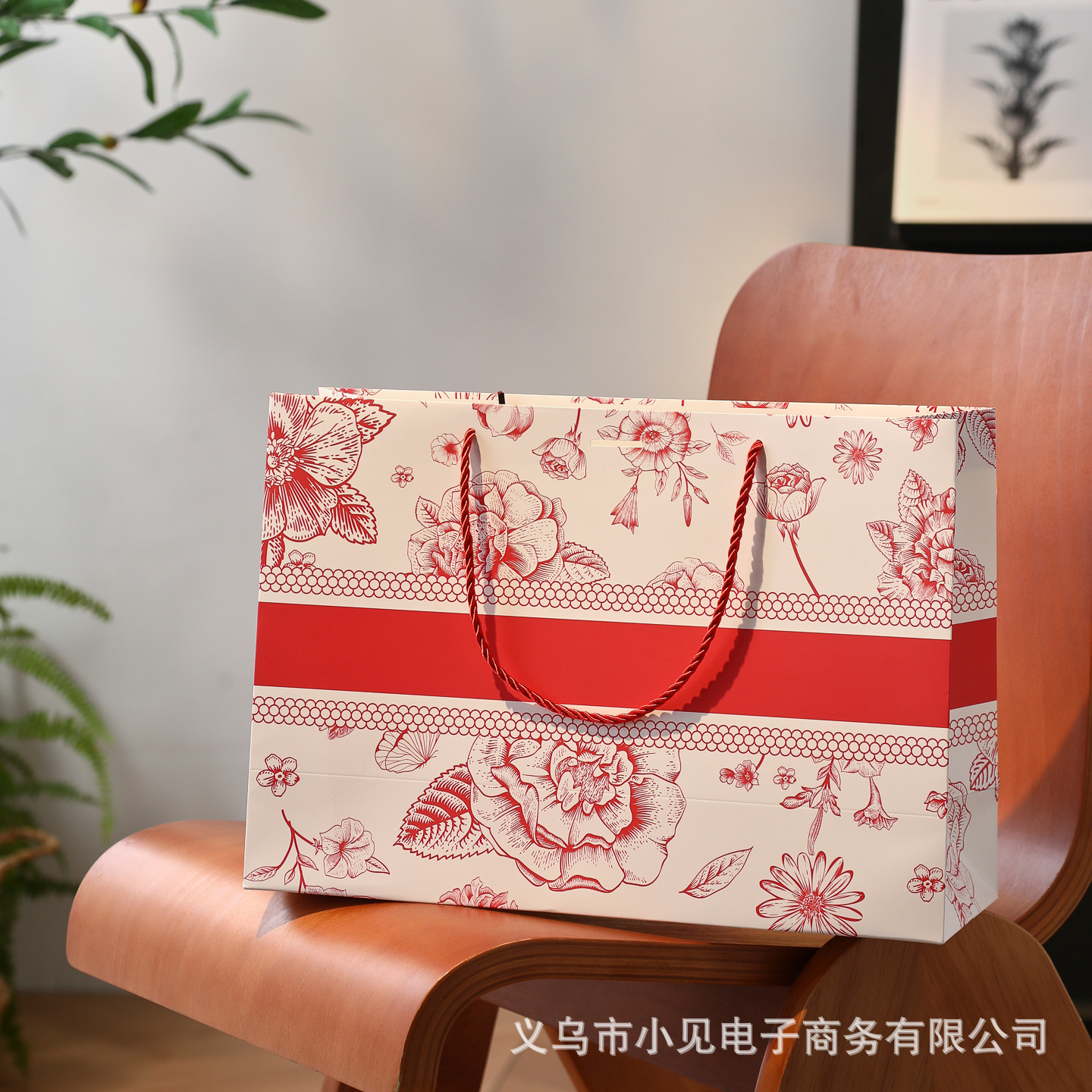 新款繁花手提袋大号礼品袋伴手礼袋结婚伴娘送礼礼物袋喜糖袋子服装店手提袋定制批发礼品袋加厚白卡纸袋子