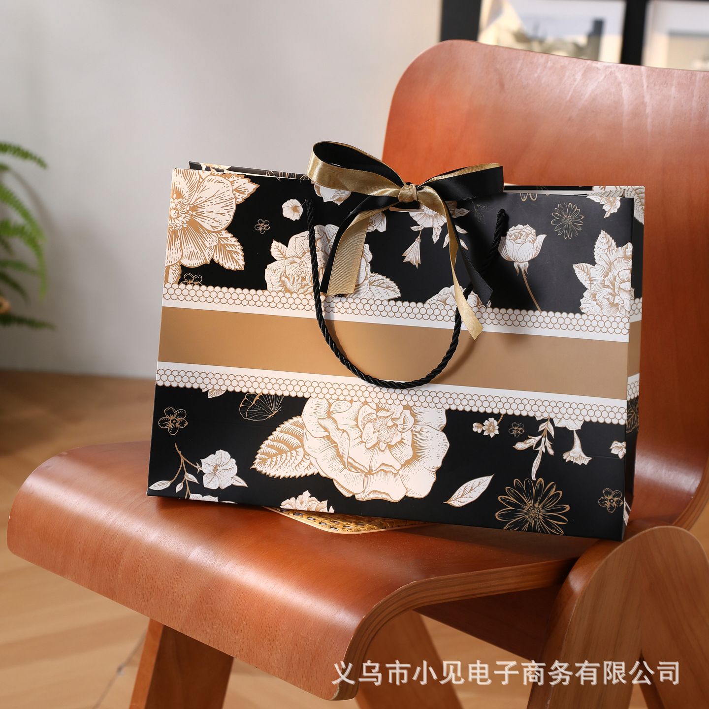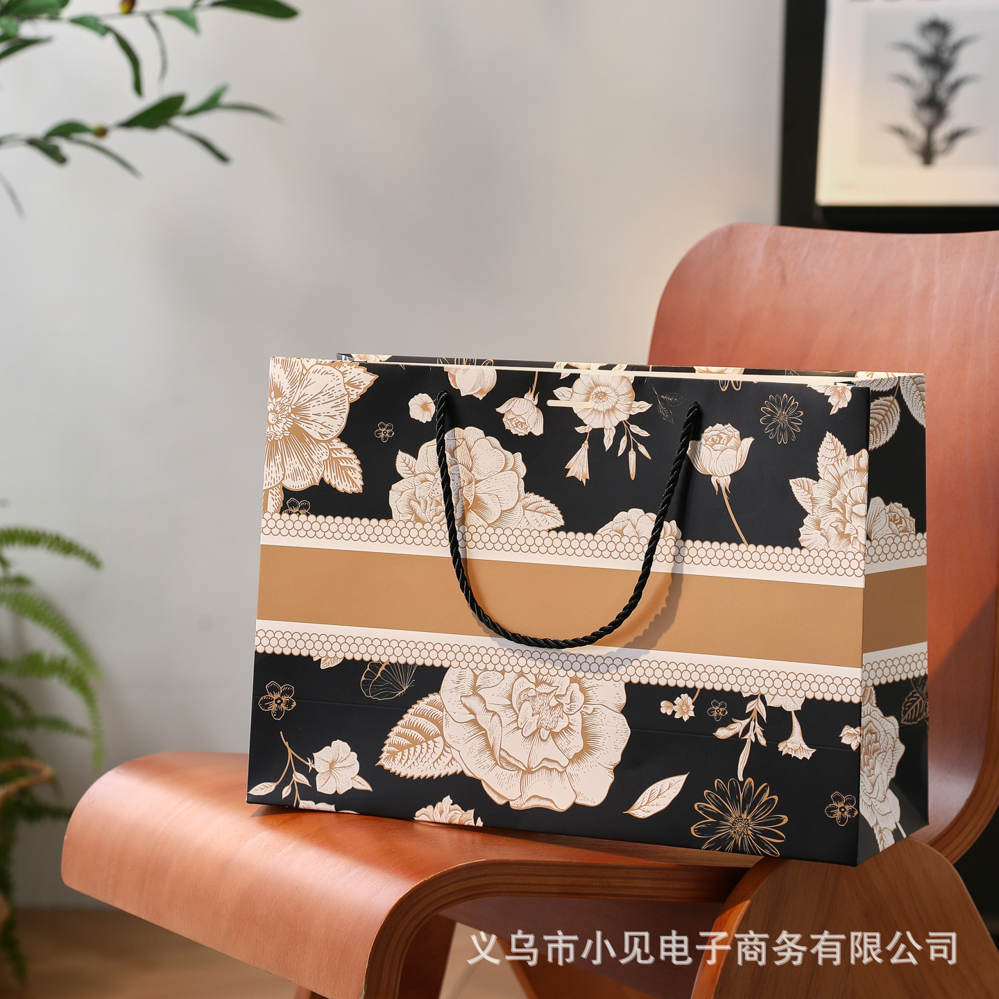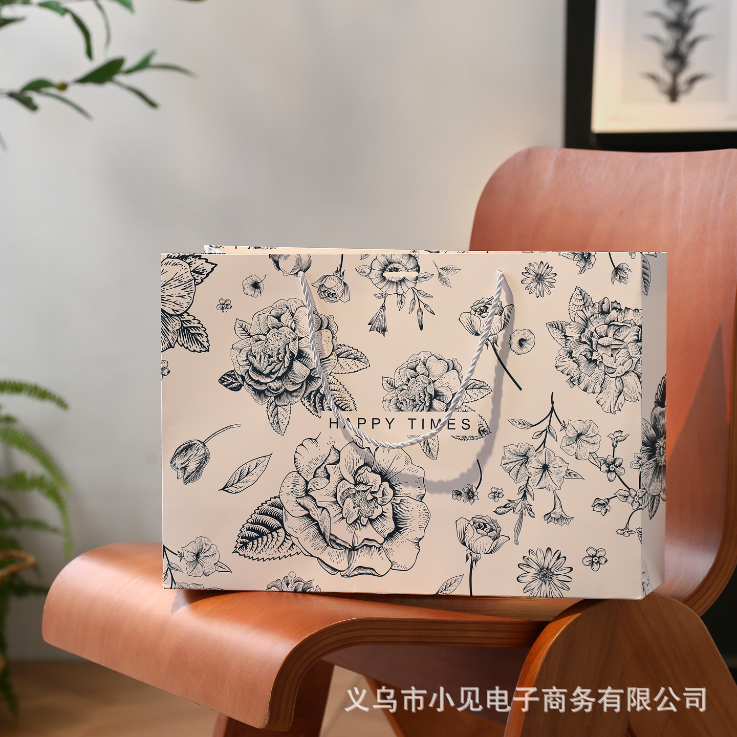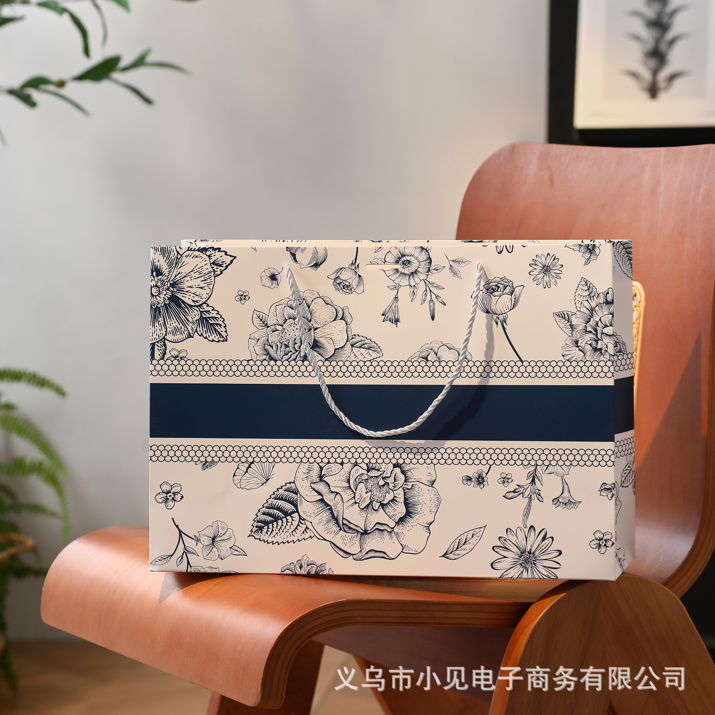 新款繁花手提袋大号礼品袋伴手礼袋结婚伴娘送礼礼物袋喜糖袋子服装店手提袋定制批发礼品袋加厚白卡纸袋子
