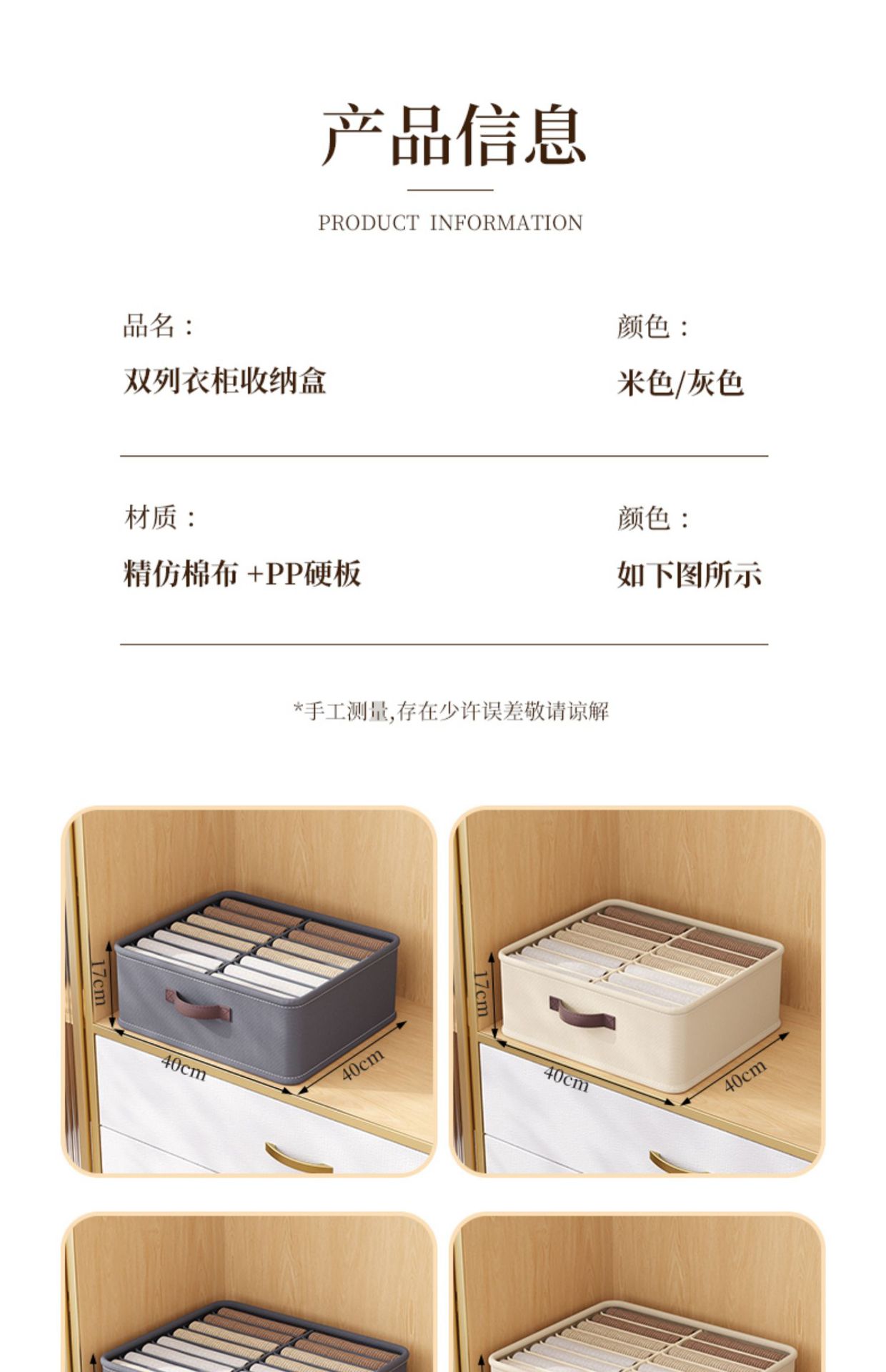 • 그리드 16개 - 베이지 [길이 40*가로 40*높이 20] 바지/스웨터/재킷 16개 수납 가능