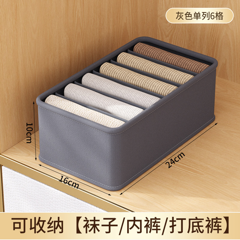 • 회색 [1열 - 소형 6칸] 깊이 24*폭 16*높이 10cm [양말 수납/