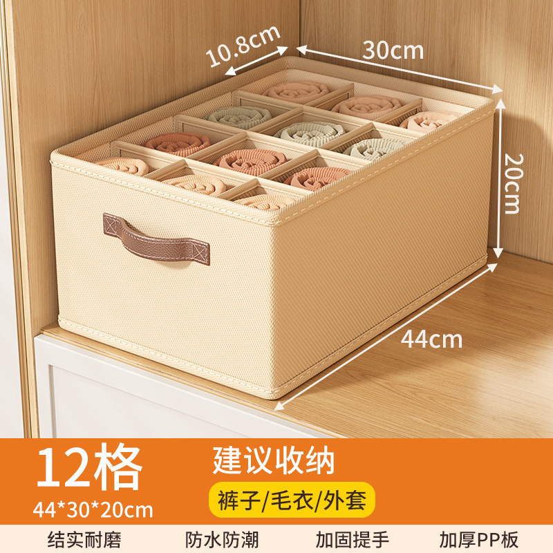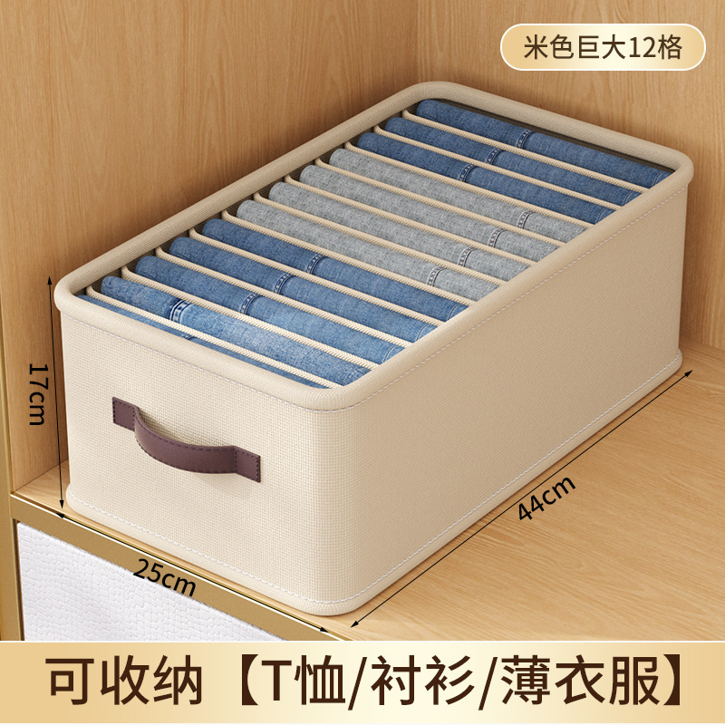 • 그리드 12개 - 베이지 [길이 44*가로 30*높이 20] 바지/스웨터/재킷 12개 수납 가능