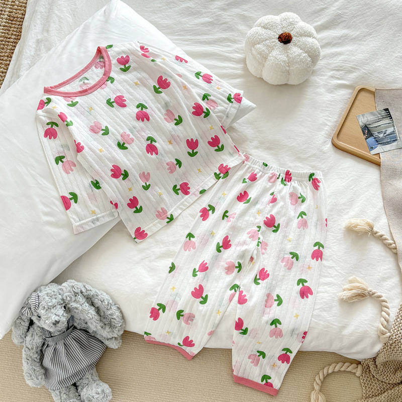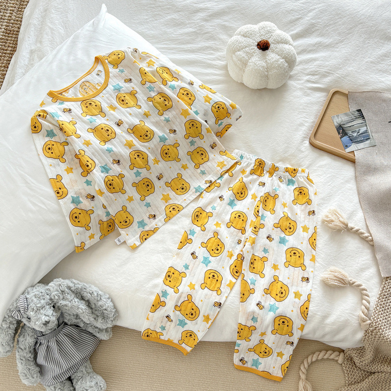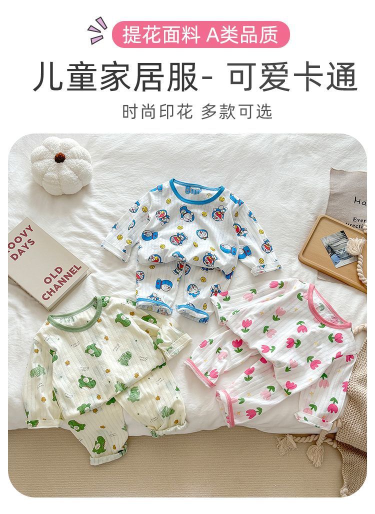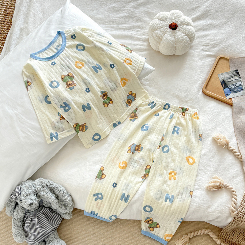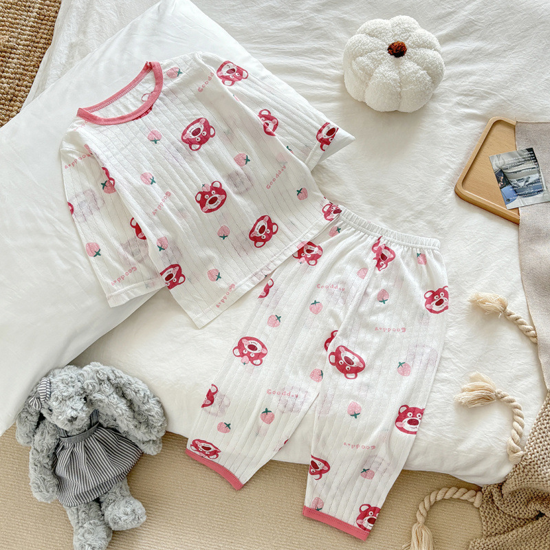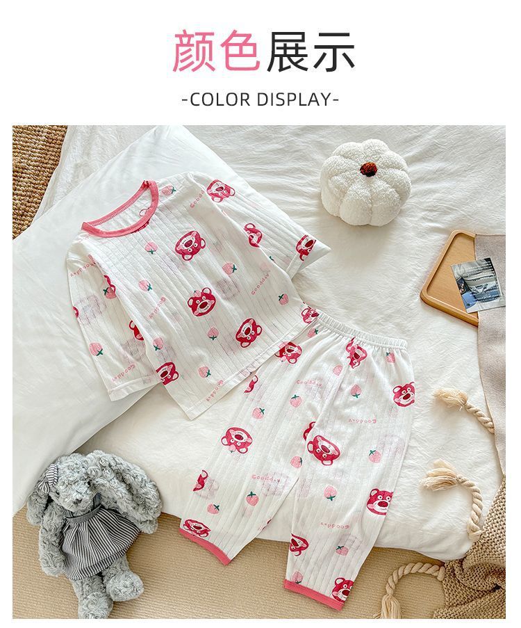 아동용 여름 순면 얇은 가정복, 남아용 7부 소매 양복, 여아용 에어컨 양복