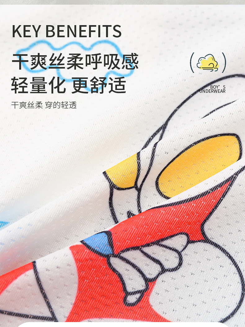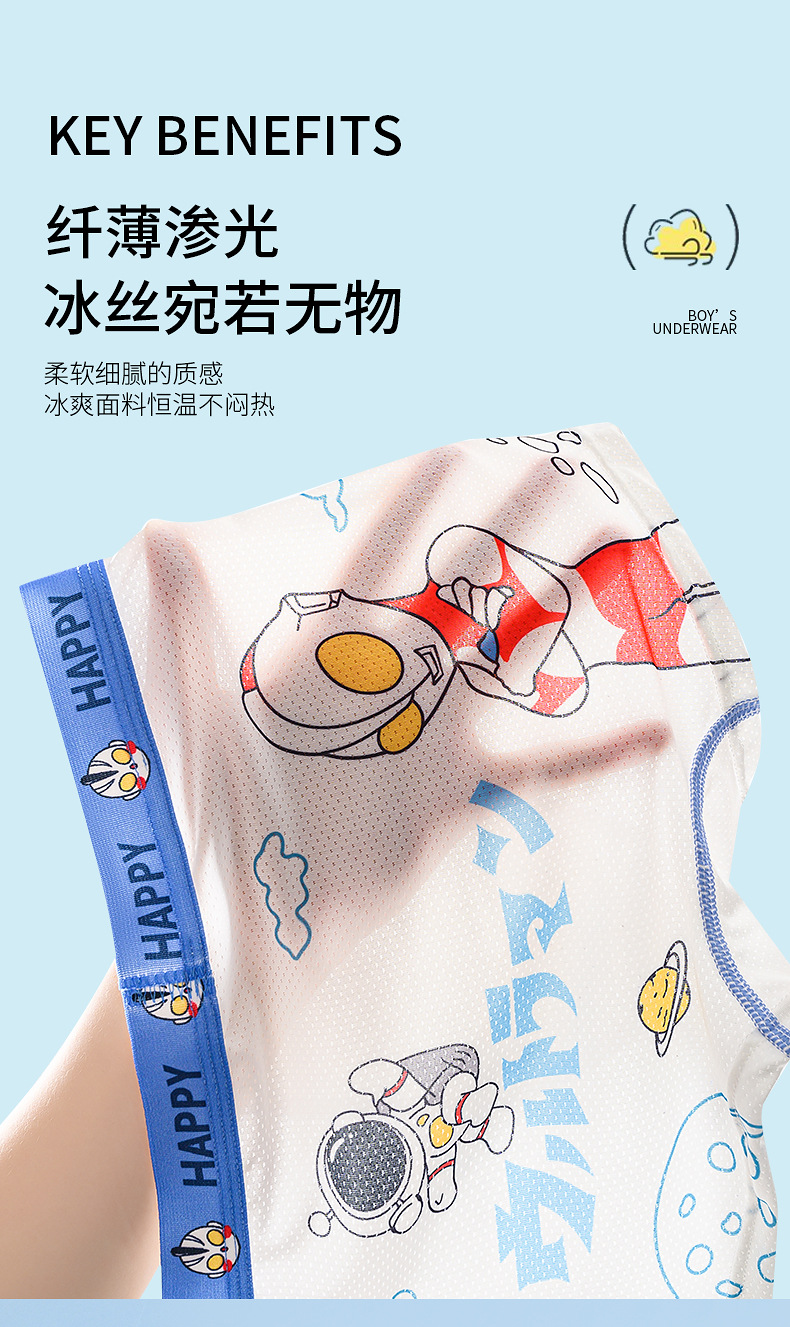 여름용 얇은 아이스 실크 메쉬 남아 팬티, 사각팬티, 중대형 어린이용, 어린 남자아이용 속옷, 만화 무늬