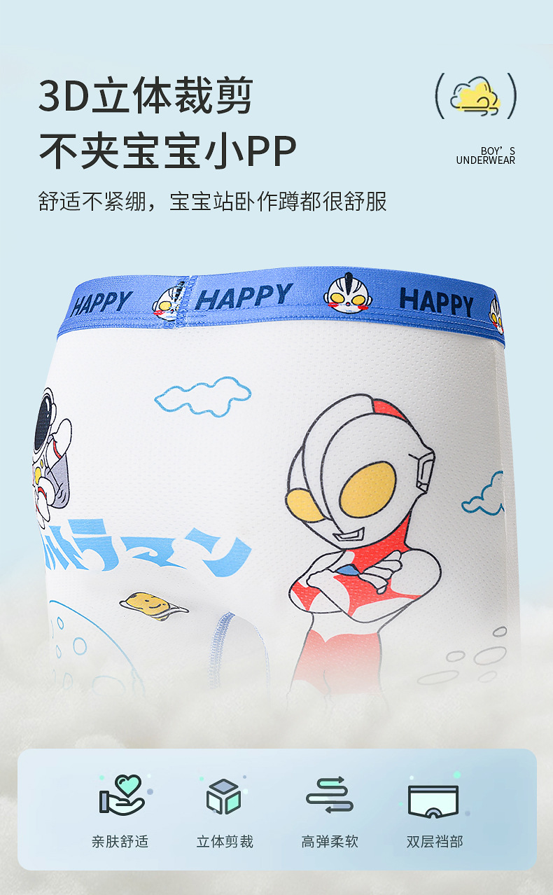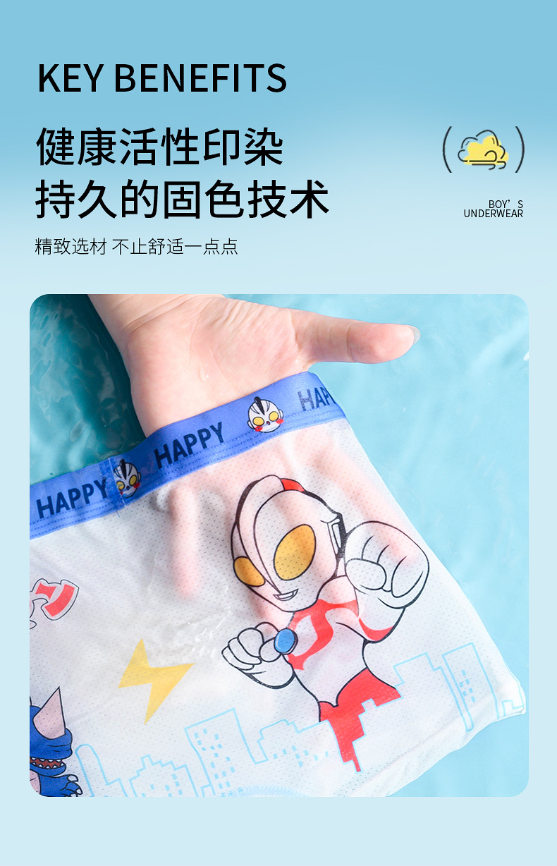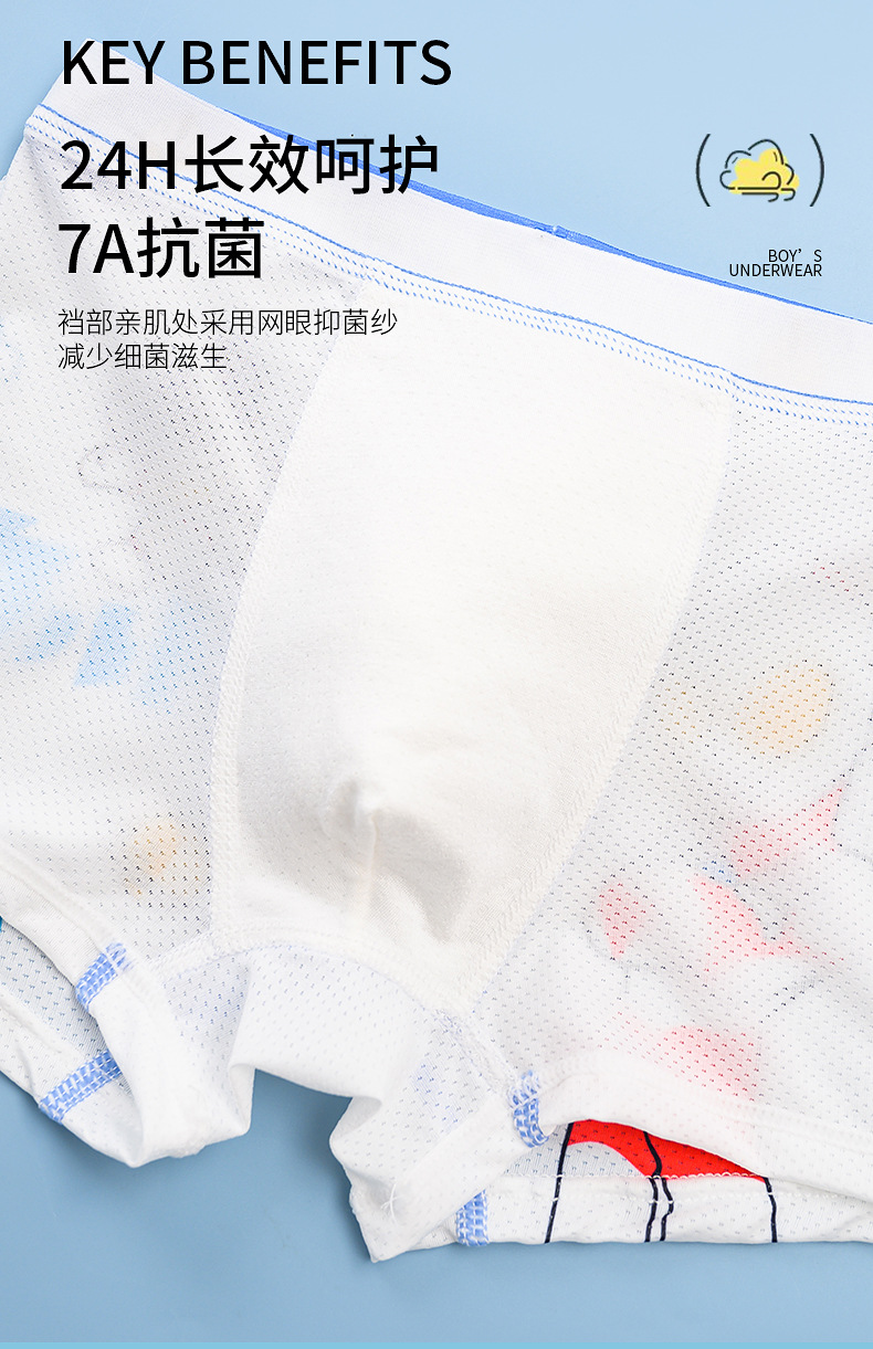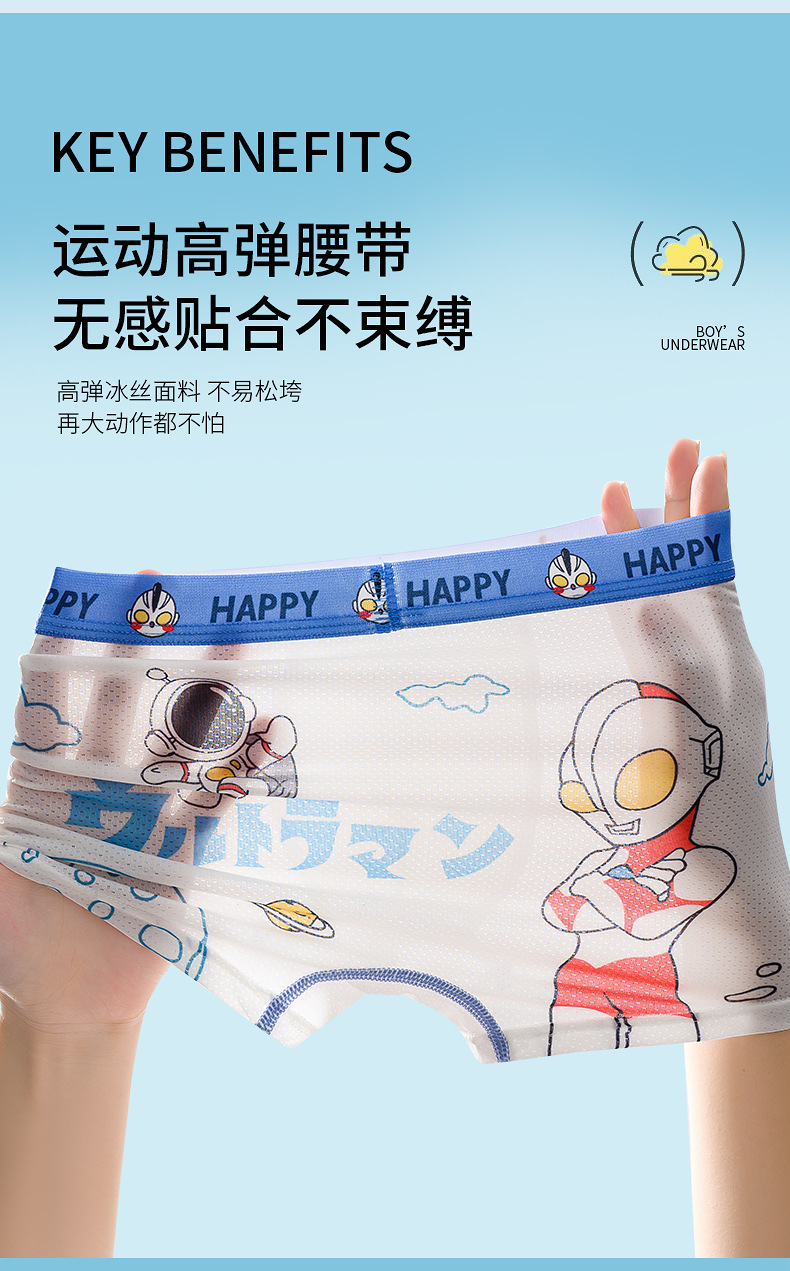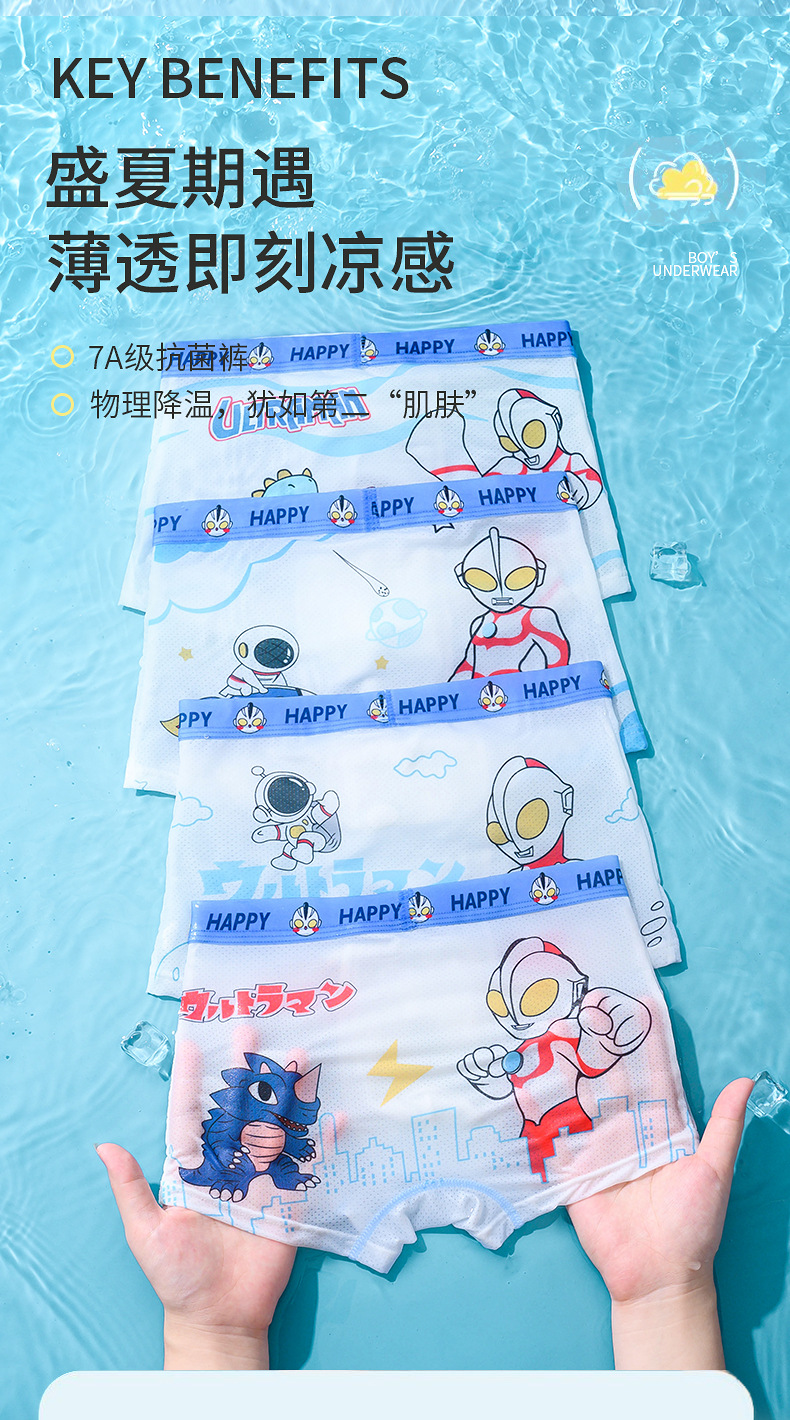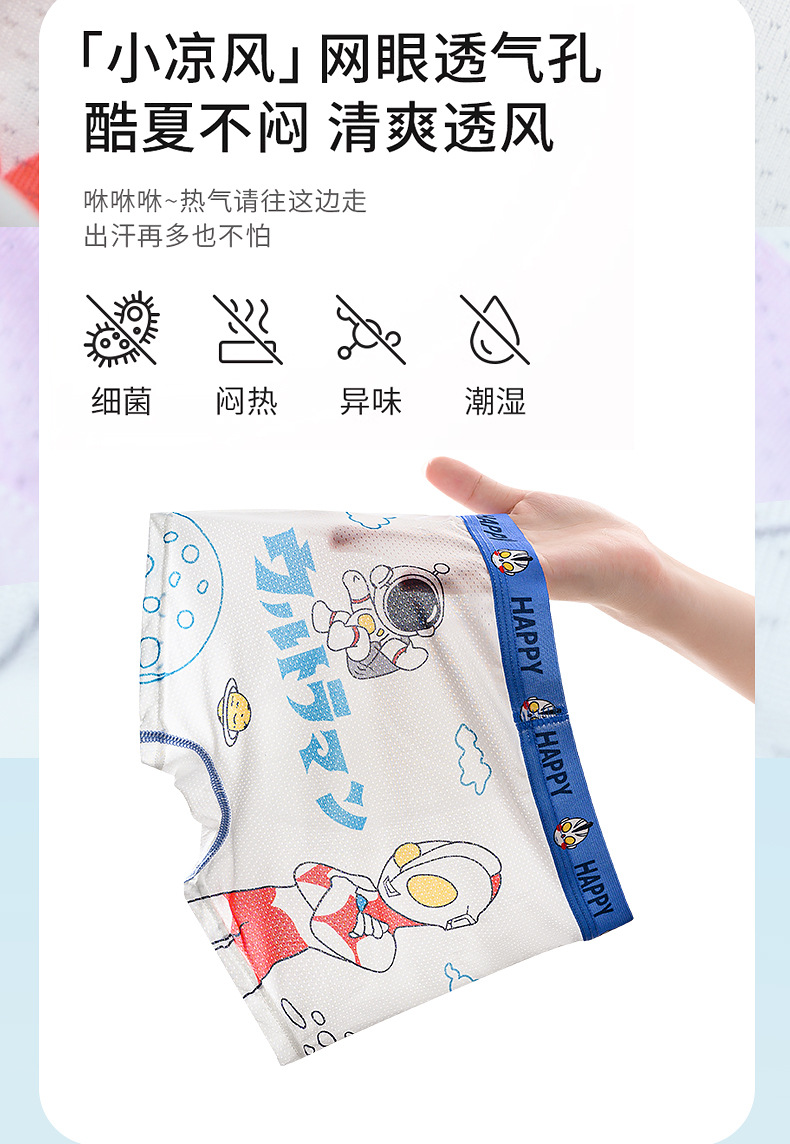 여름용 얇은 아이스 실크 메쉬 남아 팬티, 사각팬티, 중대형 어린이용, 어린 남자아이용 속옷, 만화 무늬스토어 가기