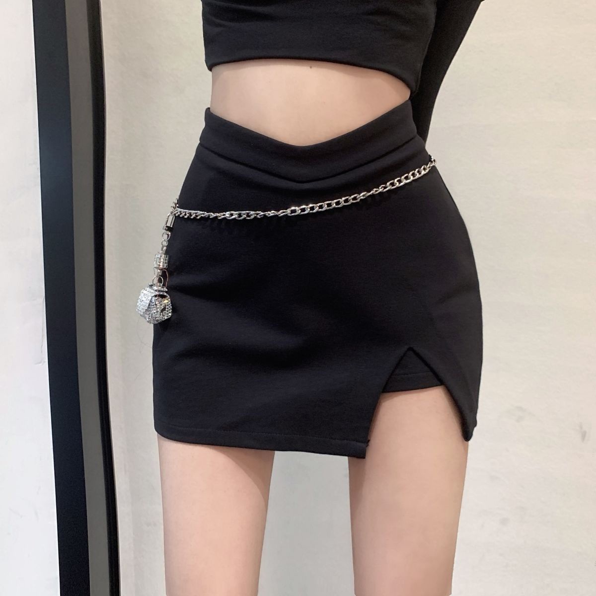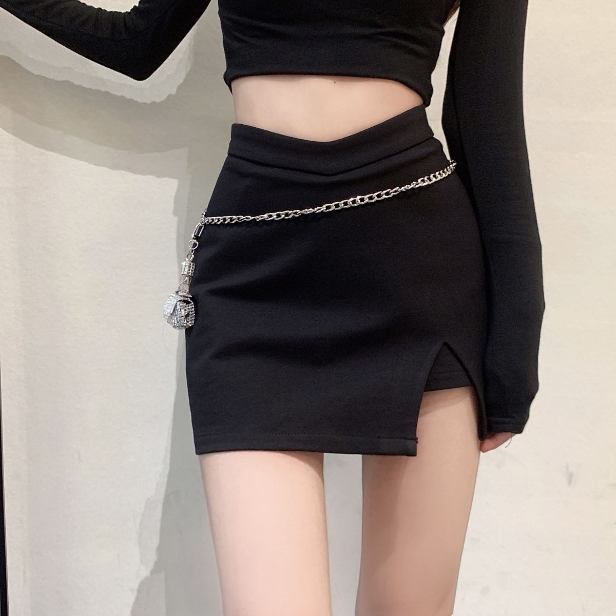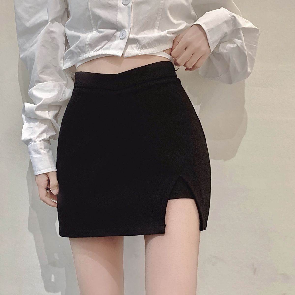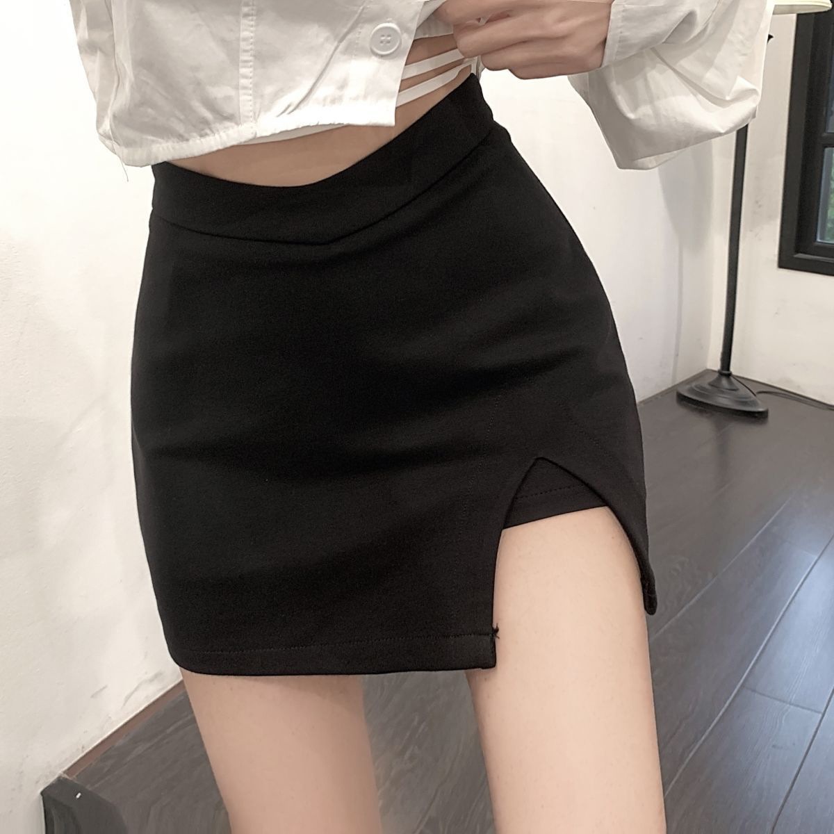 짧은 스커트 슬리밍 슬릿 블랙 스커트 여성 가을 지방 mmA 노출 방지 2024 하이 웨이스트 대형 A 라인 힙 스커트스토어 가기