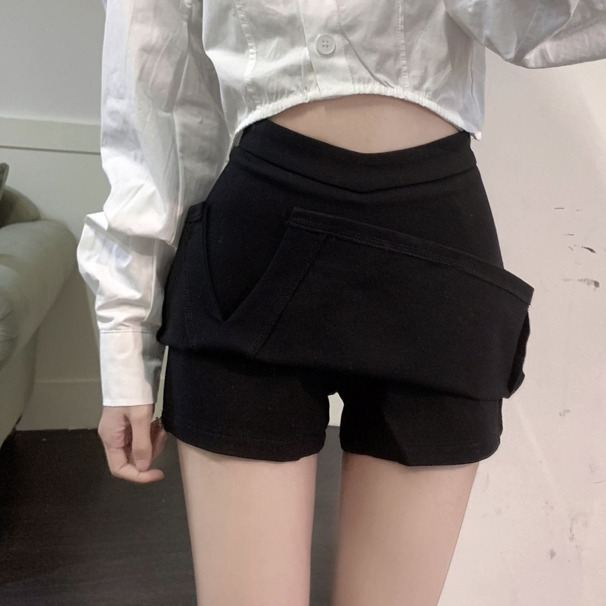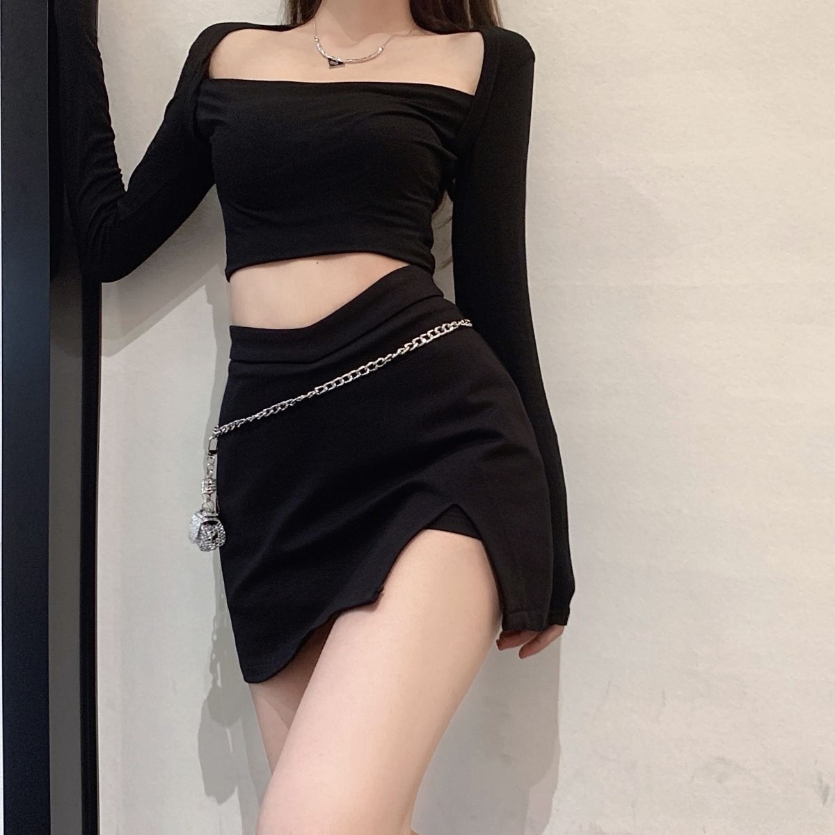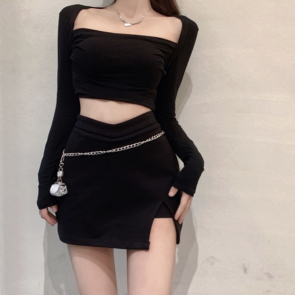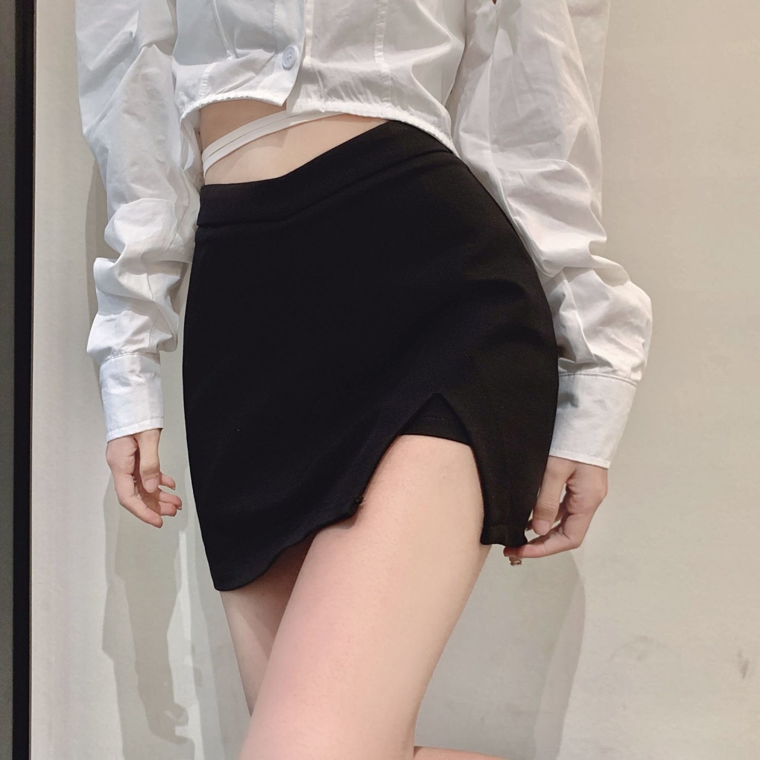 짧은 스커트 슬리밍 슬릿 블랙 스커트 여성 가을 지방 mmA 노출 방지 2024 하이 웨이스트 대형 A 라인 힙 스커트스토어 가기