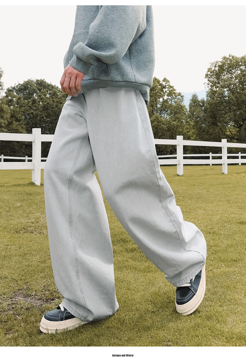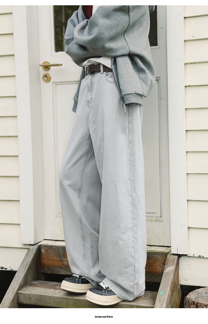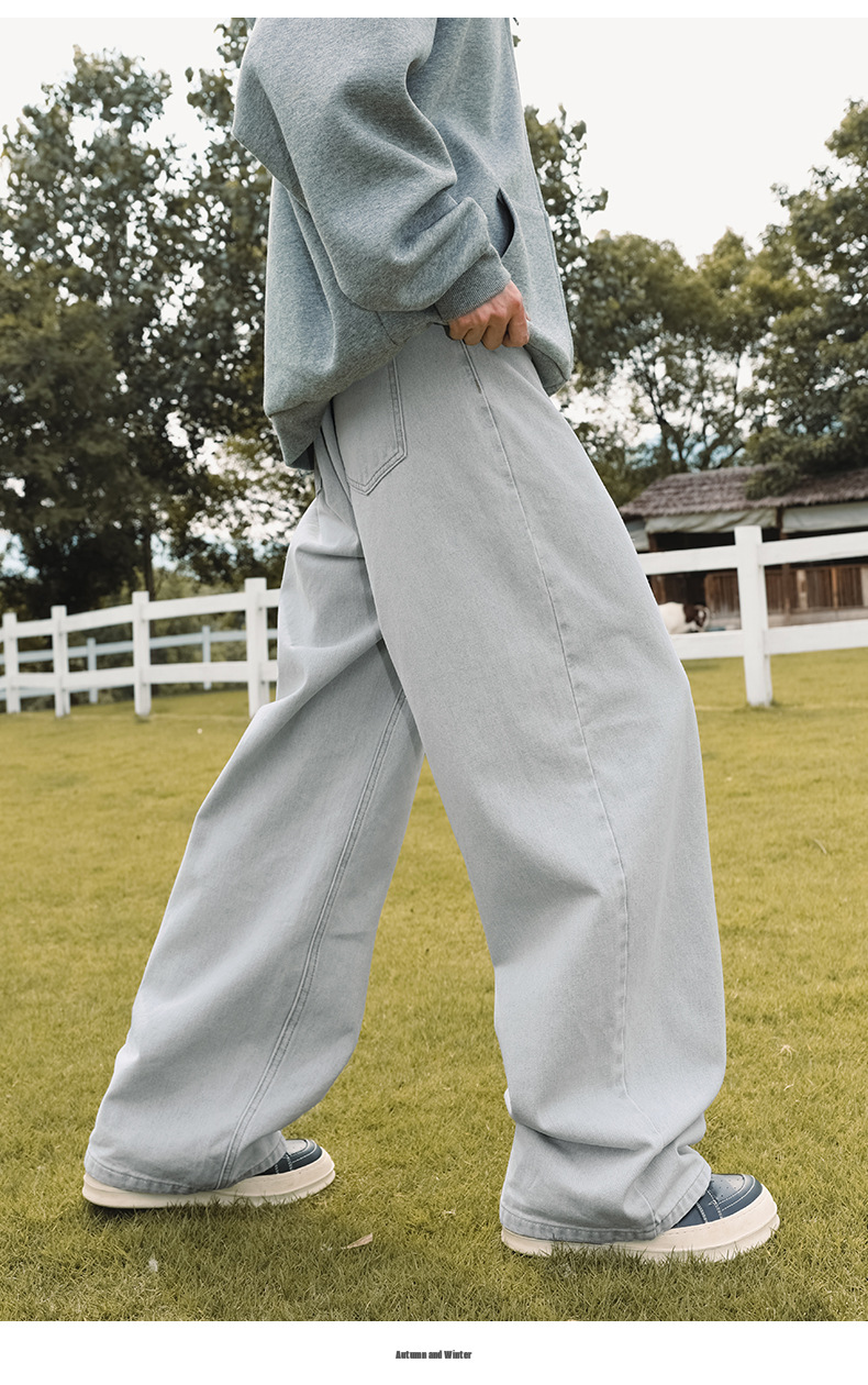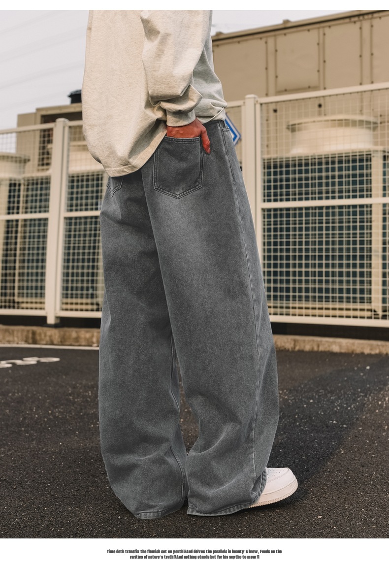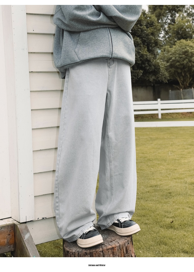 가을 신상 기본 루즈 스트레이트 팬츠 트렌디 브랜드 바지 남성용 아메리칸 레트로 워싱 디스트레스드 와이드 레그 청바지스토어 가기