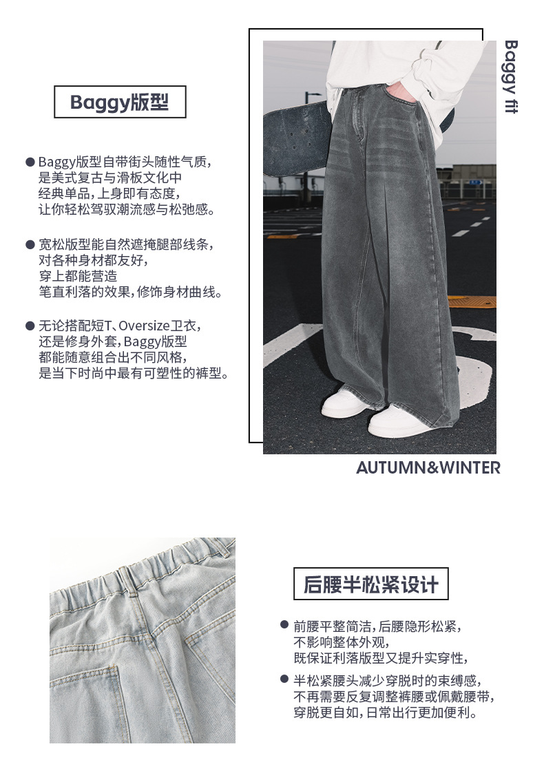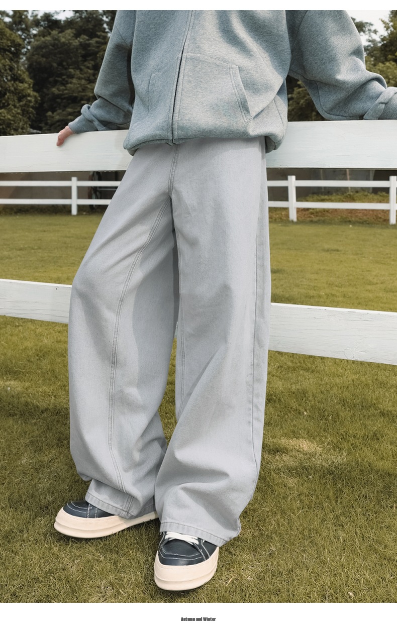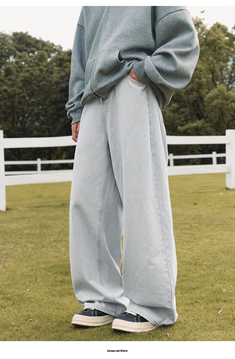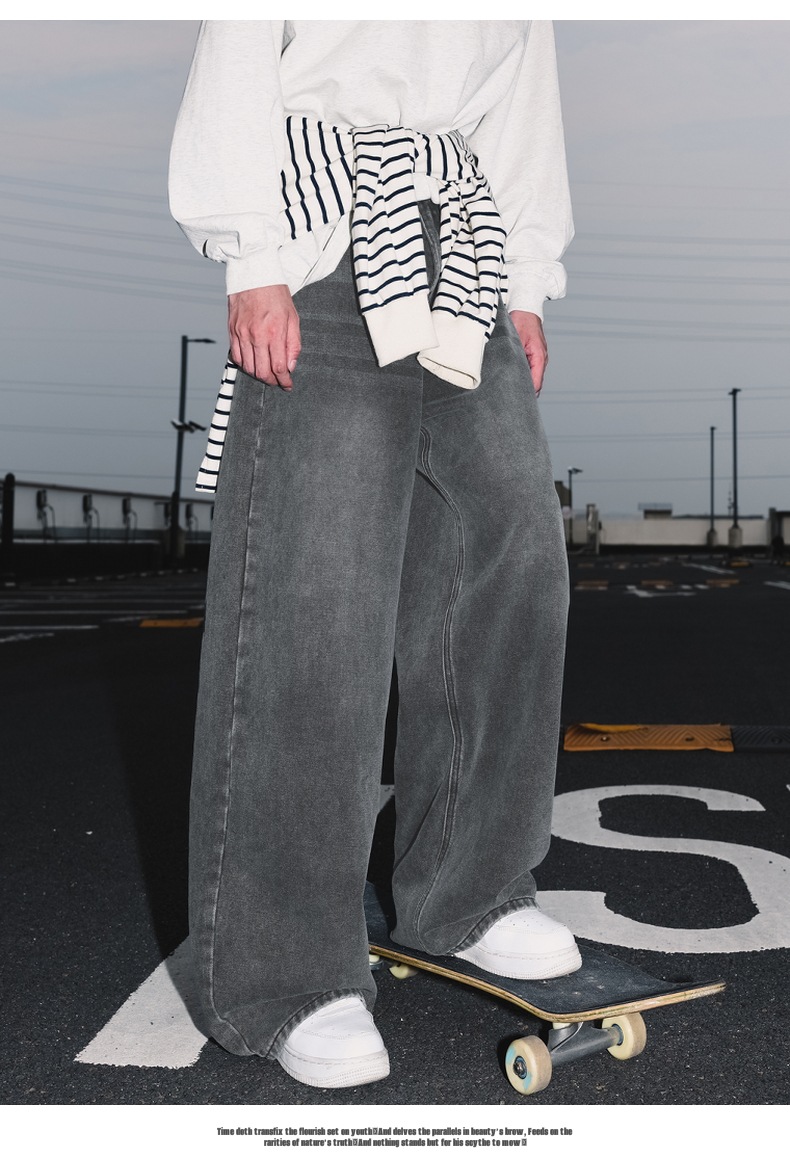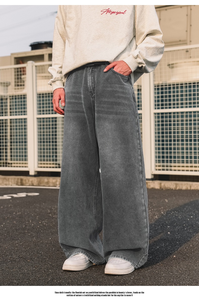 가을 신상 기본 루즈 스트레이트 팬츠 트렌디 브랜드 바지 남성용 아메리칸 레트로 워싱 디스트레스드 와이드 레그 청바지스토어 가기